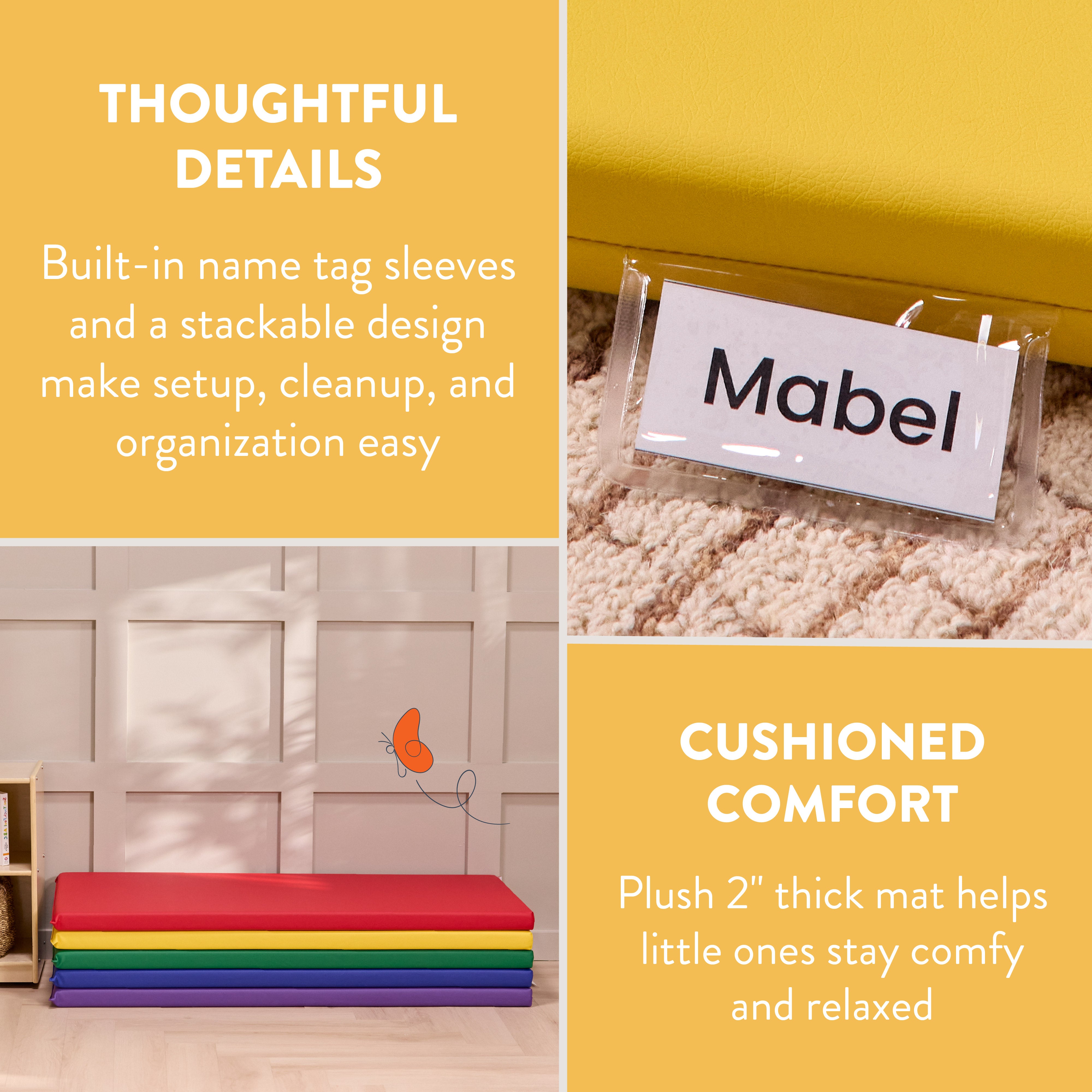 • Individualized Comfort: Each nap mat features a clear sleeve for name tags, making it easy to personalize for every child, promoting a sense of ownership and routine during daily rest and quiet time