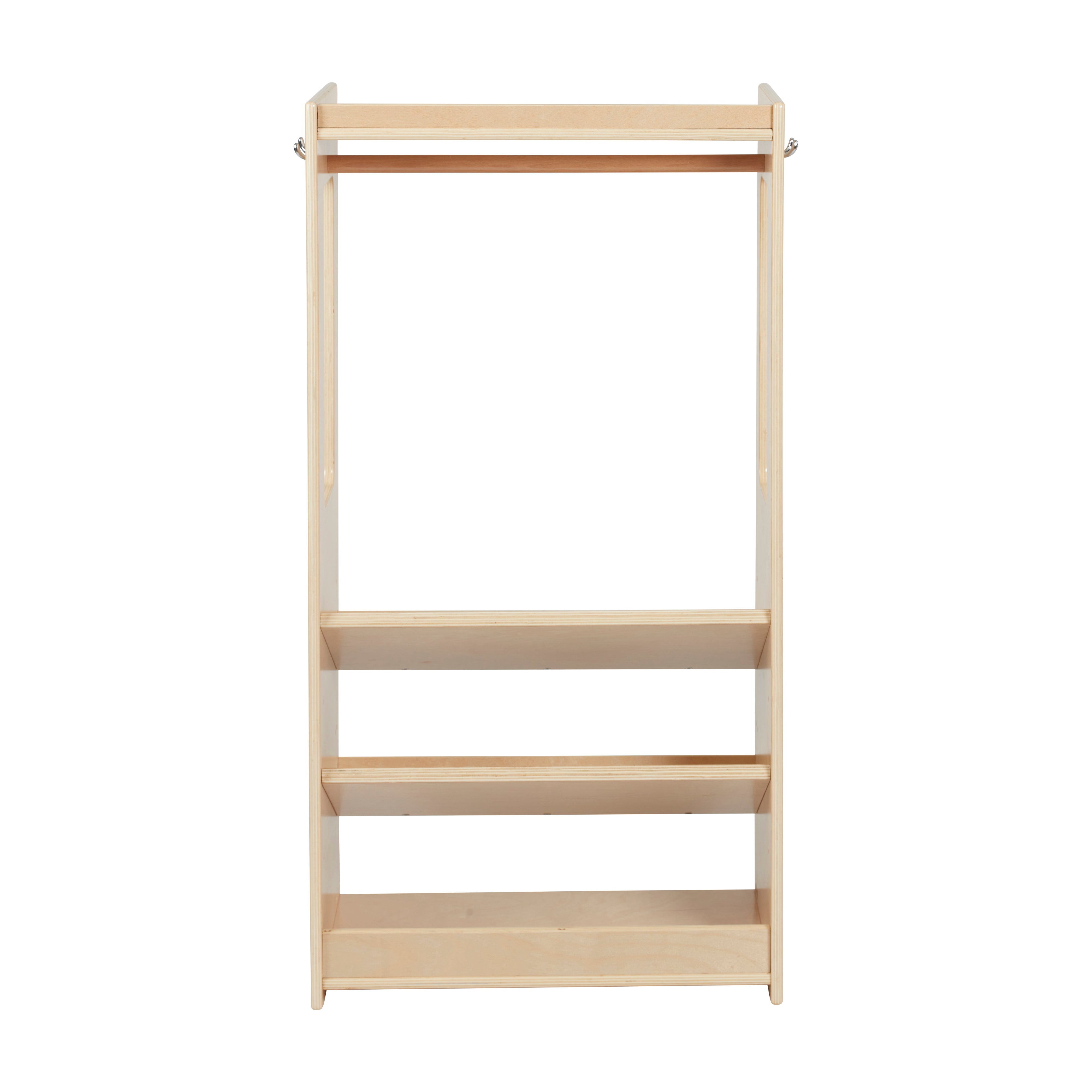 Create an inspiring space for pretend play with the Back2School Express Dress-Up & Go Clothing Rack—a compact, all-in-one solution for organizing costumes and accessories. Perfectly sized for toddlers and preschoolers, this versatile wardrobe closet fits seamlessly into a playroom, children’s bedroom, and dramatic play area. The kids dresser features three lower shelves, two adjustable, and one top shelf ideal for storing shoes, hats, and folded costumes. The wooden wardrobe bar offers the perfect place to hang toddler dress up clothes within easy reach for a versatile closet system. Shelves can be assembled straight for angled to suit your space and storage needs. The accessible design allows multiple children to explore and engage in imaginative storytelling. Crafted from sustainably sourced birch plywood, this closet island features a durable, scratch-resistant finish that protects the wood surface from daily wear. A UV inhibitor helps prevent discoloration for long-lasting quality. Strong and sturdy, the natural birch plywood construction is designed to withstand everyday use in busy homes and daycare environments. Whether used for costumes, role play, dress up storage, or as classroom furniture, this thoughtfully crafted closet organizer encourages self-expression and keeps everything tidy, accessible, and fun.
