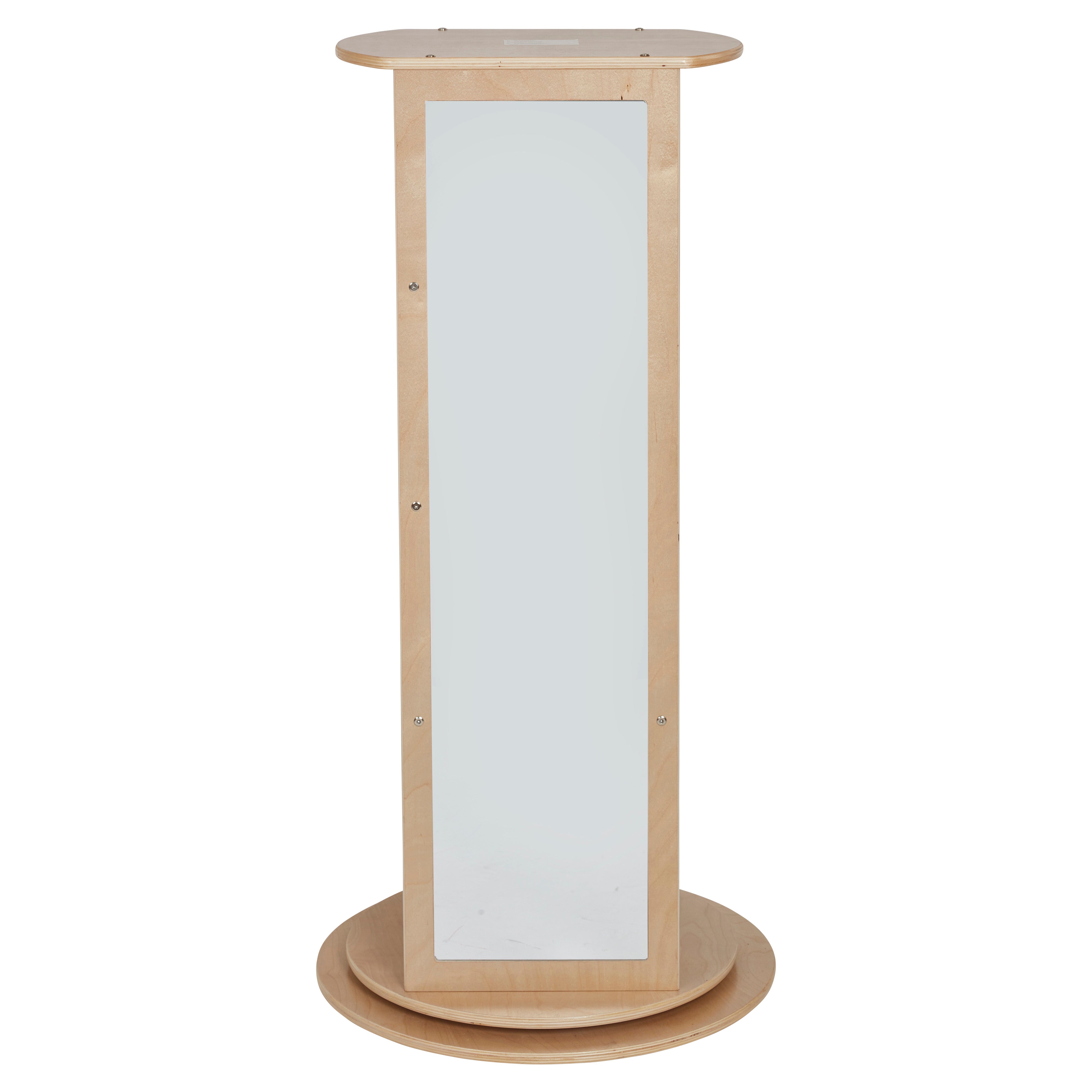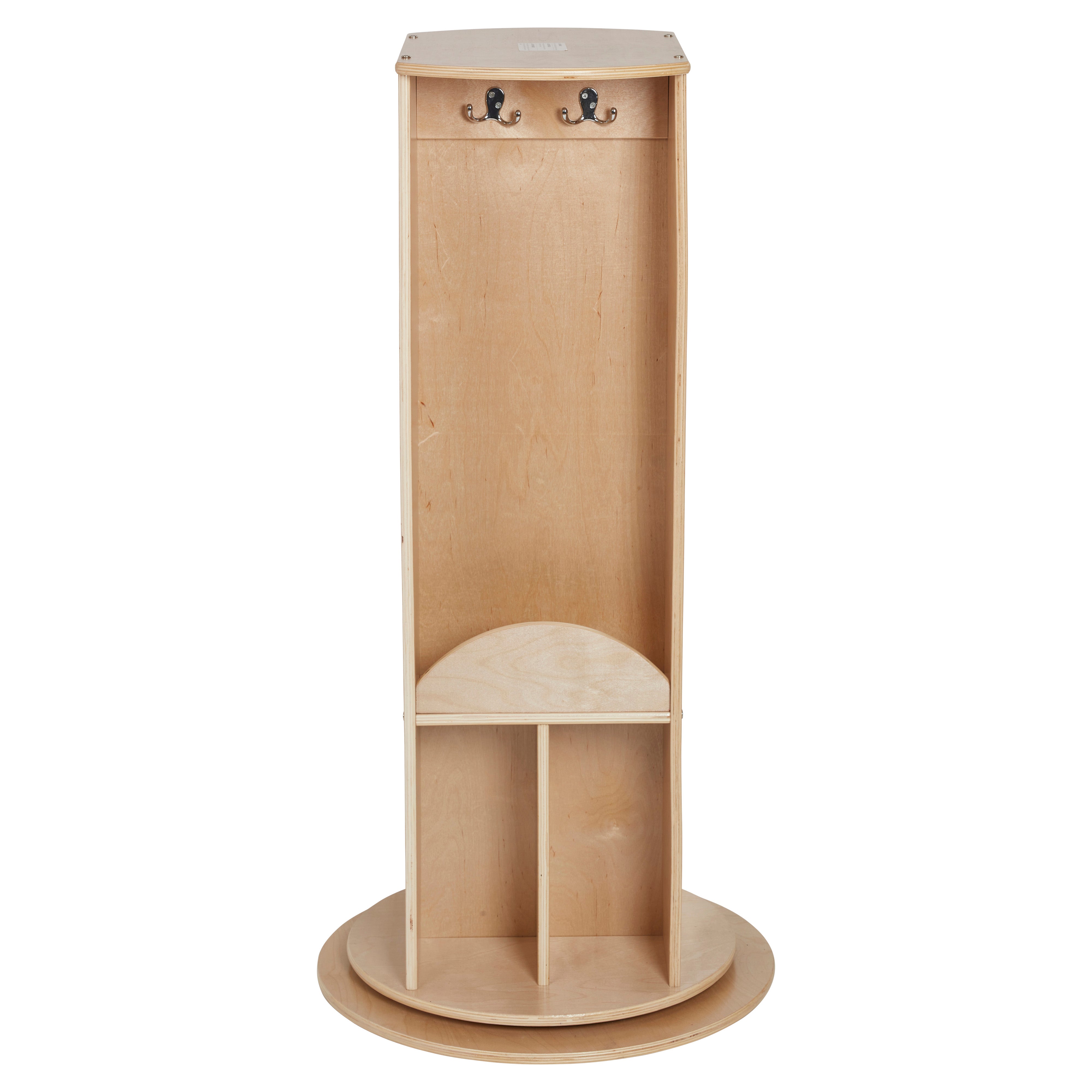 Create a playful space for growing imaginations with the Back2School Express Rotating Dress-Up Organizer with Mirror—a child-friendly storage solution designed to foster creativity, independence, and daily routines. Ideal for toddlers and preschoolers, it’s a fun and functional addition to a playroom or dramatic play center, keeping costumes, props, and accessories neatly stored and easily accessible. Thoughtfully designed for little hands, the rotating organizer features three display shelves, four lower cubbies, and two double hooks for organizing dress-up clothes, shoes, and play items. Dual full-length, shatter-resistant child-safe mirrors enhance self-expression and confidence, while the 360° rotating base allows children to browse and with ease for daily routines and imaginative storytelling. Crafted from sustainably sourced birch plywood, this kids clothing rack features a durable, scratch-resistant finish that protects the wood surface from daily wear. A UV inhibitor helps prevent discoloration for long-lasting quality. Strong and sturdy, the natural birch plywood construction is designed to withstand everyday use in busy homes and daycares. The rotating dress-up carousel has a compact footprint, making it an ideal choice for small spaces. Whether used as a dress-up storage rack in a children's bedroom or as classroom furniture, this multi-functional piece contributes to a tidy learning environment.