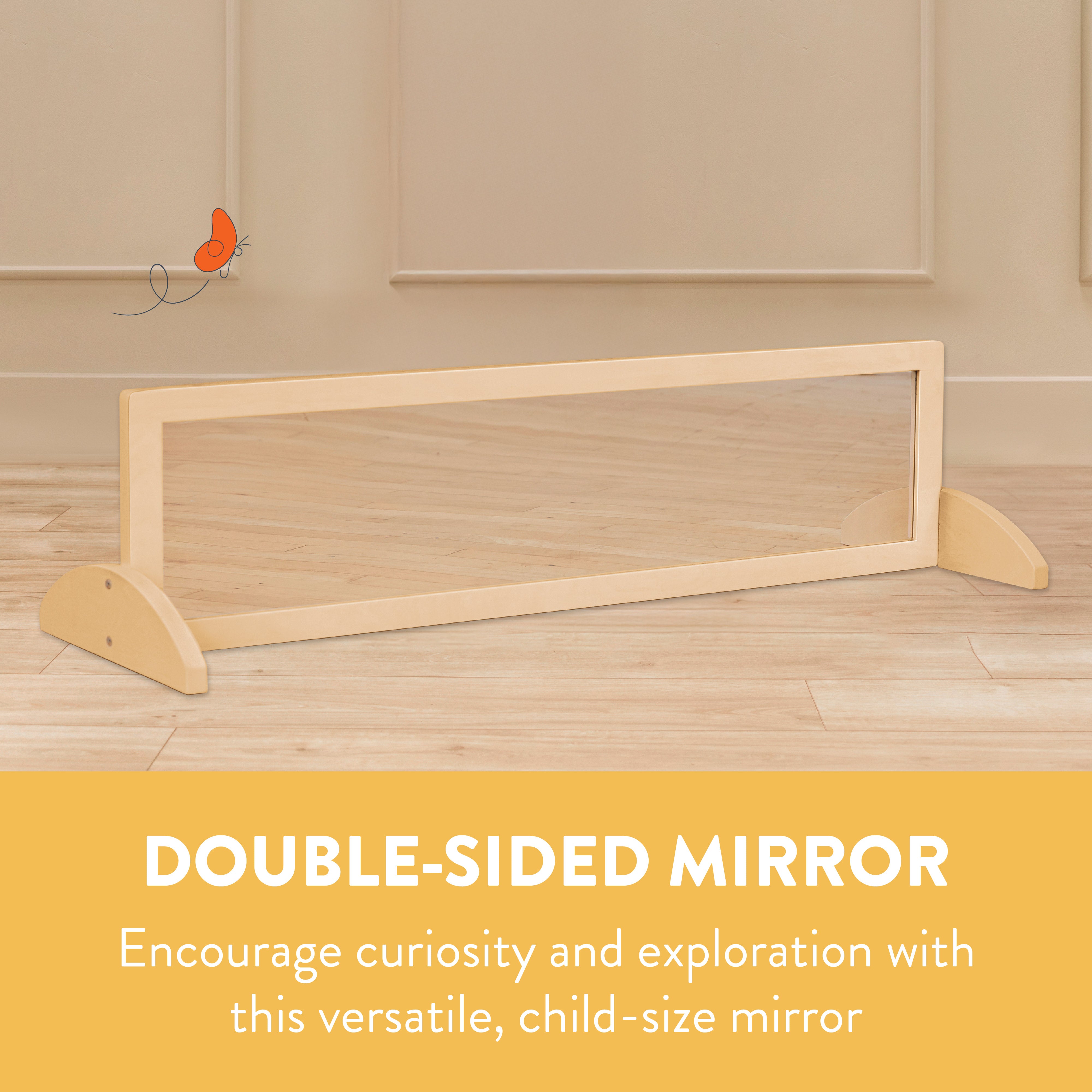 Inspire curiosity and self-expression with the Back2School Express Double-Sided Bi-Directional Mirror, designed to help little ones see themselves and the world around them. The bi-directional mirror features an adaptable design that can be used horizontally or vertically, making it perfect as a tummy time mirror for infants or a stand-up mirror beside a toddler dresser or kids vanity. This full-length standing mirror is perfectly sized to encourage dress-up, pretend play, and morning routines. It is ideal for kids' bedroom furniture or a Montessori-inspired play space. Multiple children can explore self-discovery at once with the double-sided design. Babies engage during floor play with the safety mirror, while toddlers enjoy expressing themselves in dramatic play in the upright position. Crafted from sustainably sourced birch plywood, this tummy time mirror features a durable, scratch-resistant finish that protects the wood surface from daily wear. A UV inhibitor helps prevent discoloration for long-lasting quality. Strong and sturdy, the natural birch plywood construction is designed to withstand everyday use in a busy home, classroom, and daycare environment. Ideal for nursery, playroom, and daycare furniture setups, this stylish full-length mirror is also a practical and engaging tool for early learning.