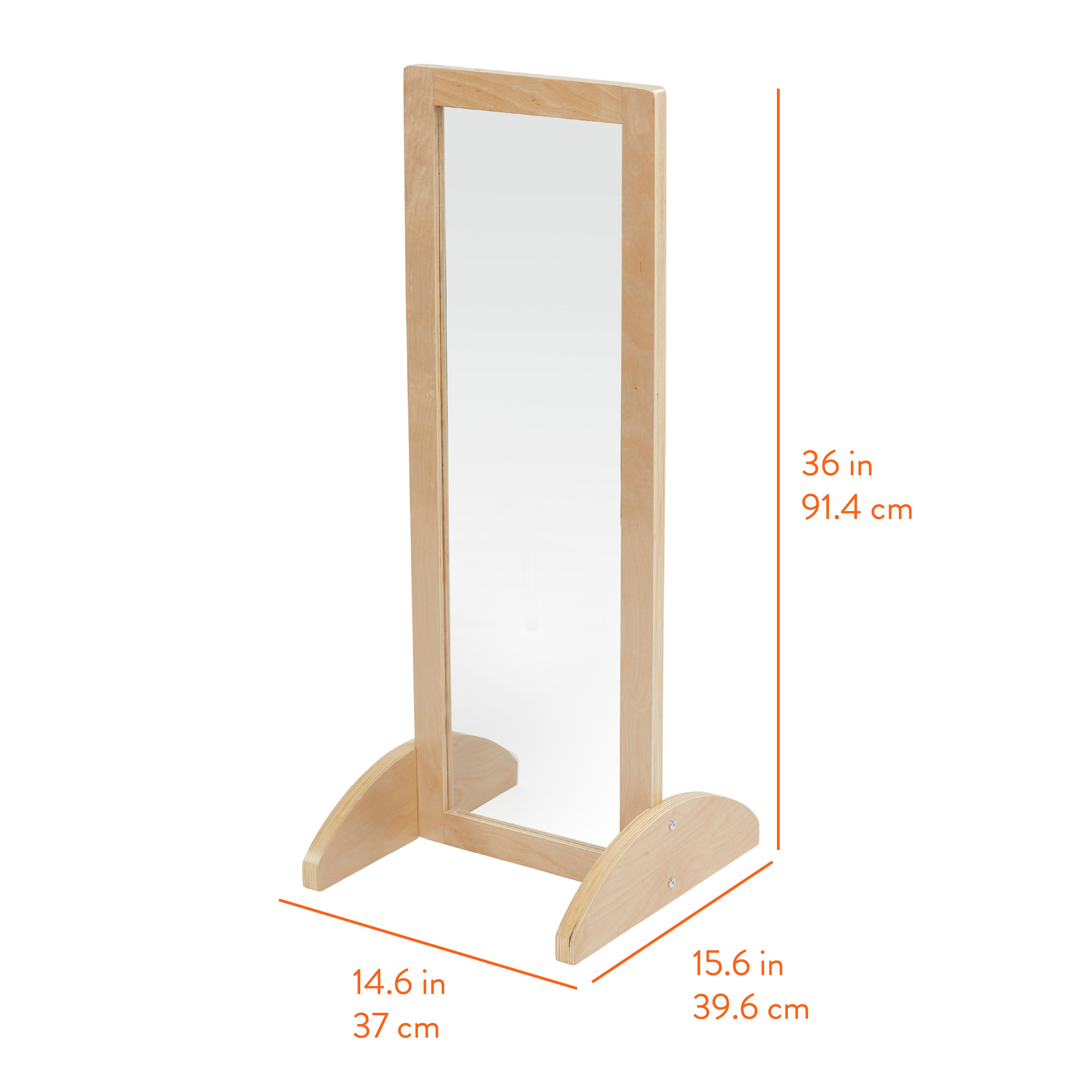 • Wood Mirror: A single-sided, kid-safe mirror designed for vertical and horizontal use, ideal for open-ended play in a school or home; use as a floor mirror or a full-length mirror with a stand
