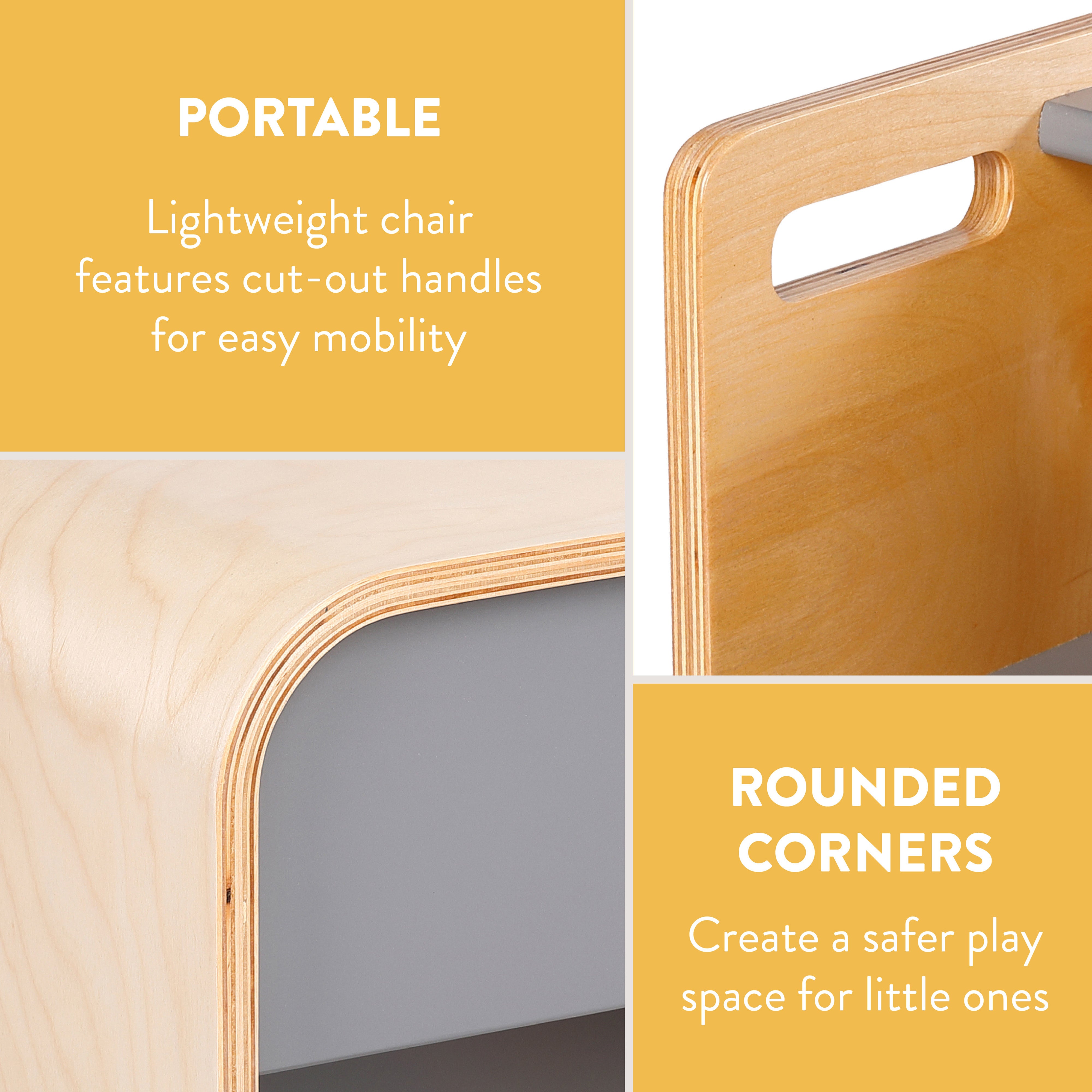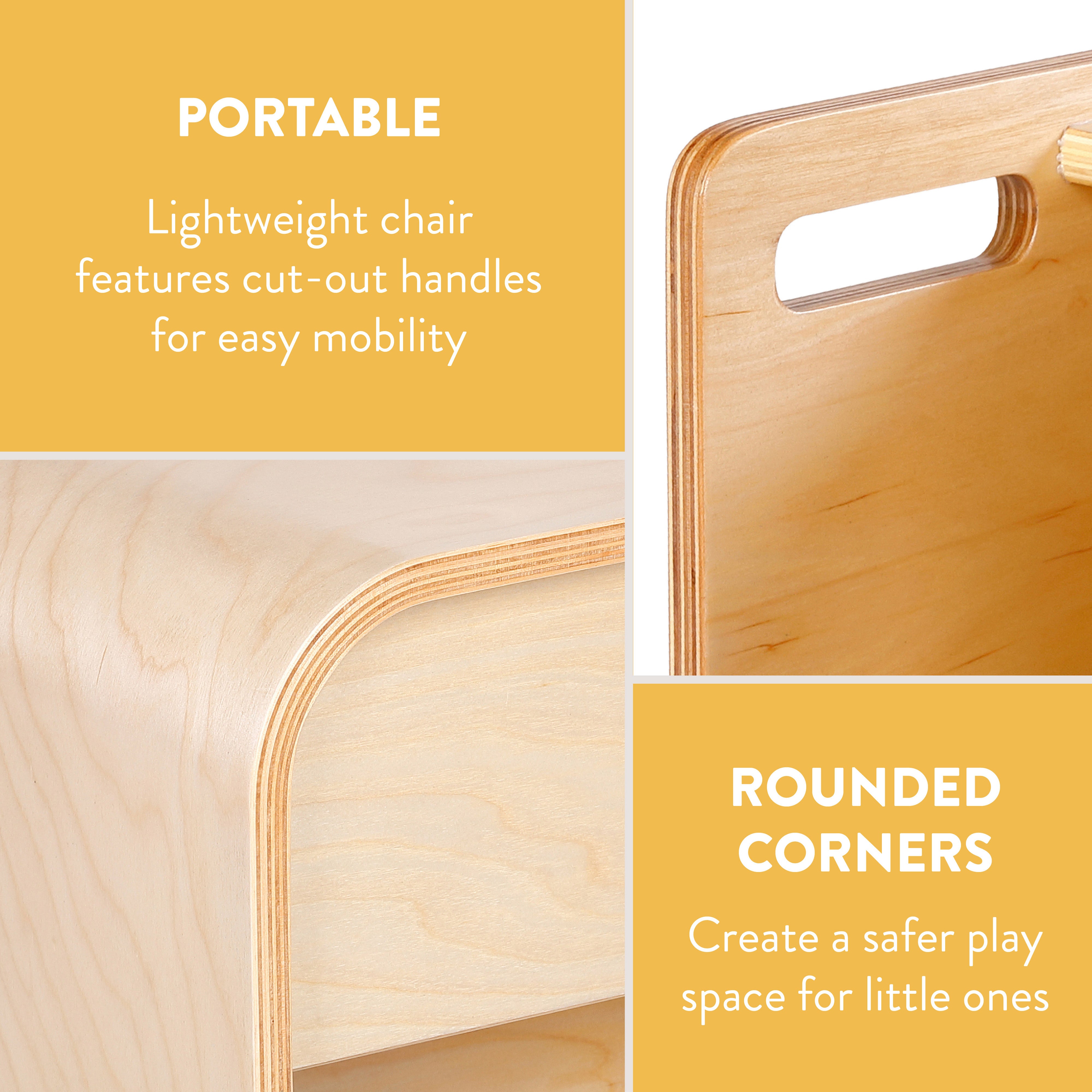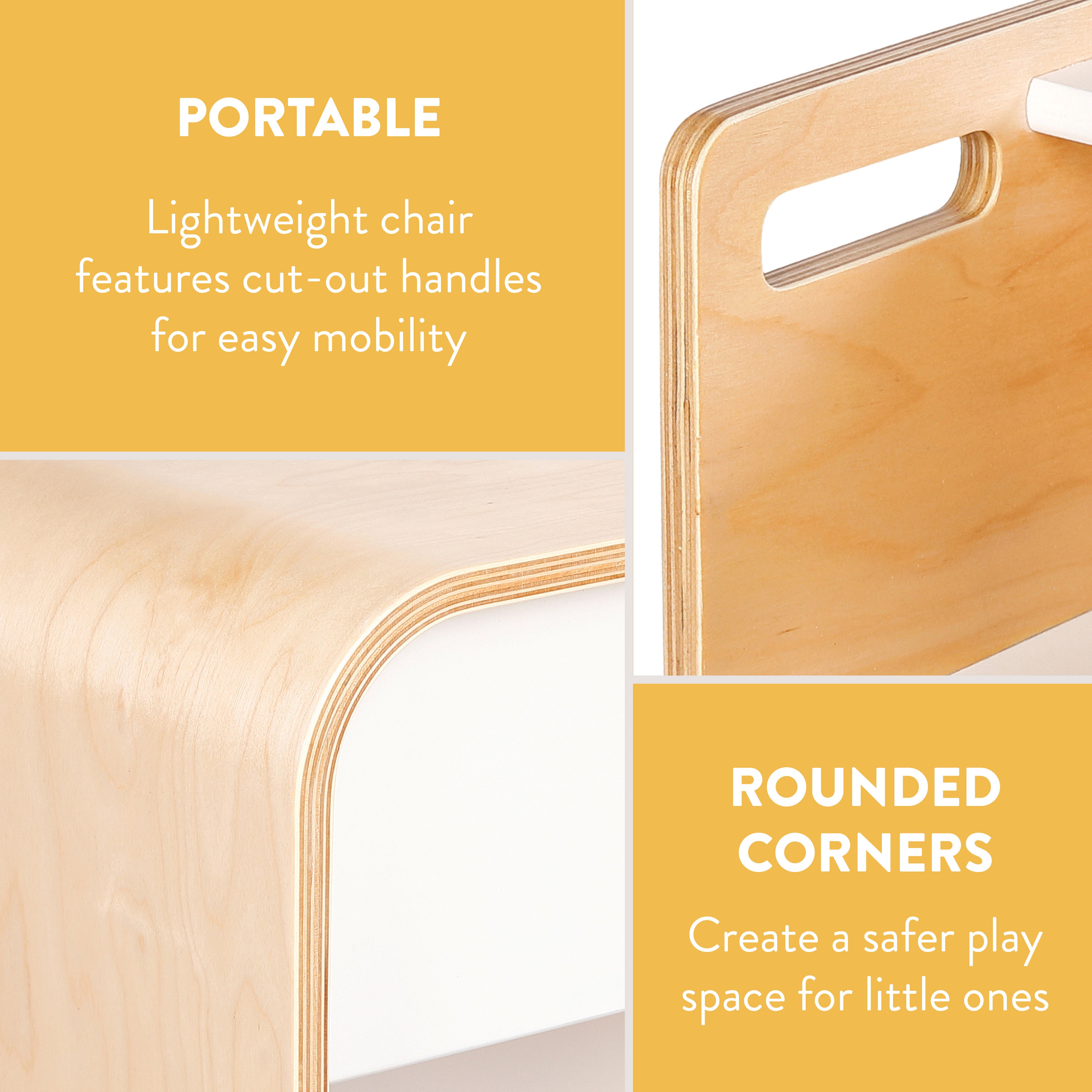 Designed for curious kids and busy families, the Back2School Express Bentwood ConvertiCube Chair adapts as a toddler chair, step stool, or activity table – making it easy to create a space that grows with your child. With its space-saving design cube design, this versatile wooden piece easily transforms into a toddler desk, activity table, step stool, shelf, or wooden chair, perfect for supporting play, learning, and independence at home or in the classroom. Rounded edges and built-in handles make it easy and safe for kids to move independently, empowering them to take part in setting up their learning space. Crafted from sustainably sourced birch plywood that is shaped into toddler furniture that features a durable, scratch-resistant finish that protects the wood surface from daily wear. A UV inhibitor helps prevent discoloration for long-lasting quality. Strong and sturdy, the natural birch plywood construction is designed to withstand everyday use in a busy home and daycare environment. Whether used as a toddler desk chair, daycare furniture, small kids table, or classroom furniture, the ConvertiCube fits beautifully into any daycare or playroom. Thoughtfully designed for families, this flexible chair brings together form, function, and fun—just right for today’s busy, creative kids.