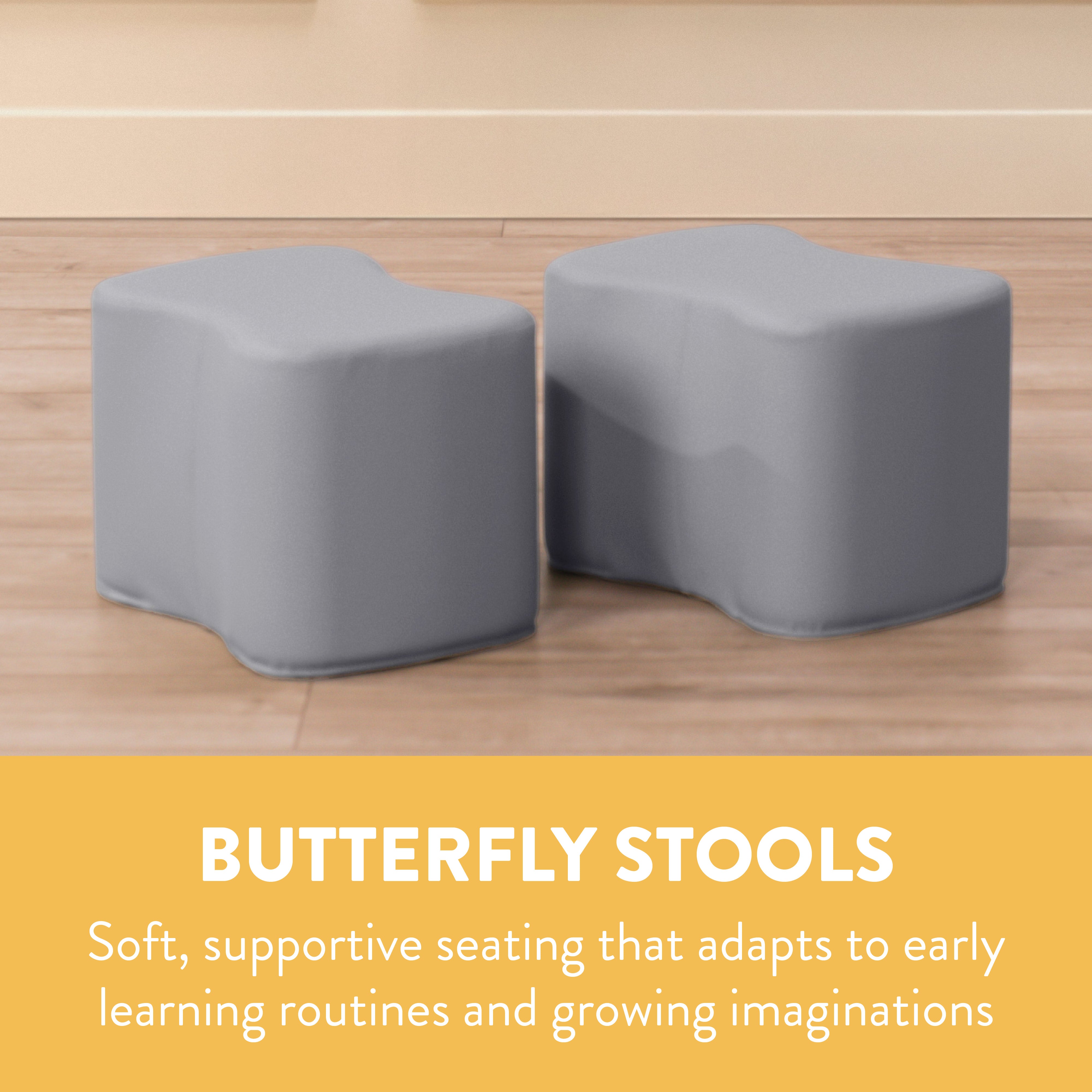 Make room for creativity and connection with the Back2School Express Butterfly Stools, a vibrant 2-pack set designed for flexible seating in a classroom, home learning space, or toddler playroom. With a playful, whimsical shape, each toddler chair supports comfortable sitting during story time, collaborative play, or quiet reading. The modular design enables children to rearrange and combine pieces into entertaining formations—such as a circle, wave, or even a mini modular couch—encouraging both independence and imagination. Thick foam seats feature a textured non-slip base to help keep them in place during use. Made with kid-safe, high-quality materials that are easy to clean, the classroom stools meet safety standards for use in early learning environments. Each modular stool is durable, low-maintenance, and designed to withstand everyday play. The small design fits neatly into daycares or playrooms—ideal for teachers and parents seeking adaptable classroom must-haves and toddler room essentials. Compact and versatile, each stool for kids works as floor seating, a reading nook chair, or stylish accent for classroom decor. Whether you're designing a cozy homeschool corner or refreshing your classroom furniture, this set blends playful function with practical durability, making it perfect for any flexible seating setup.