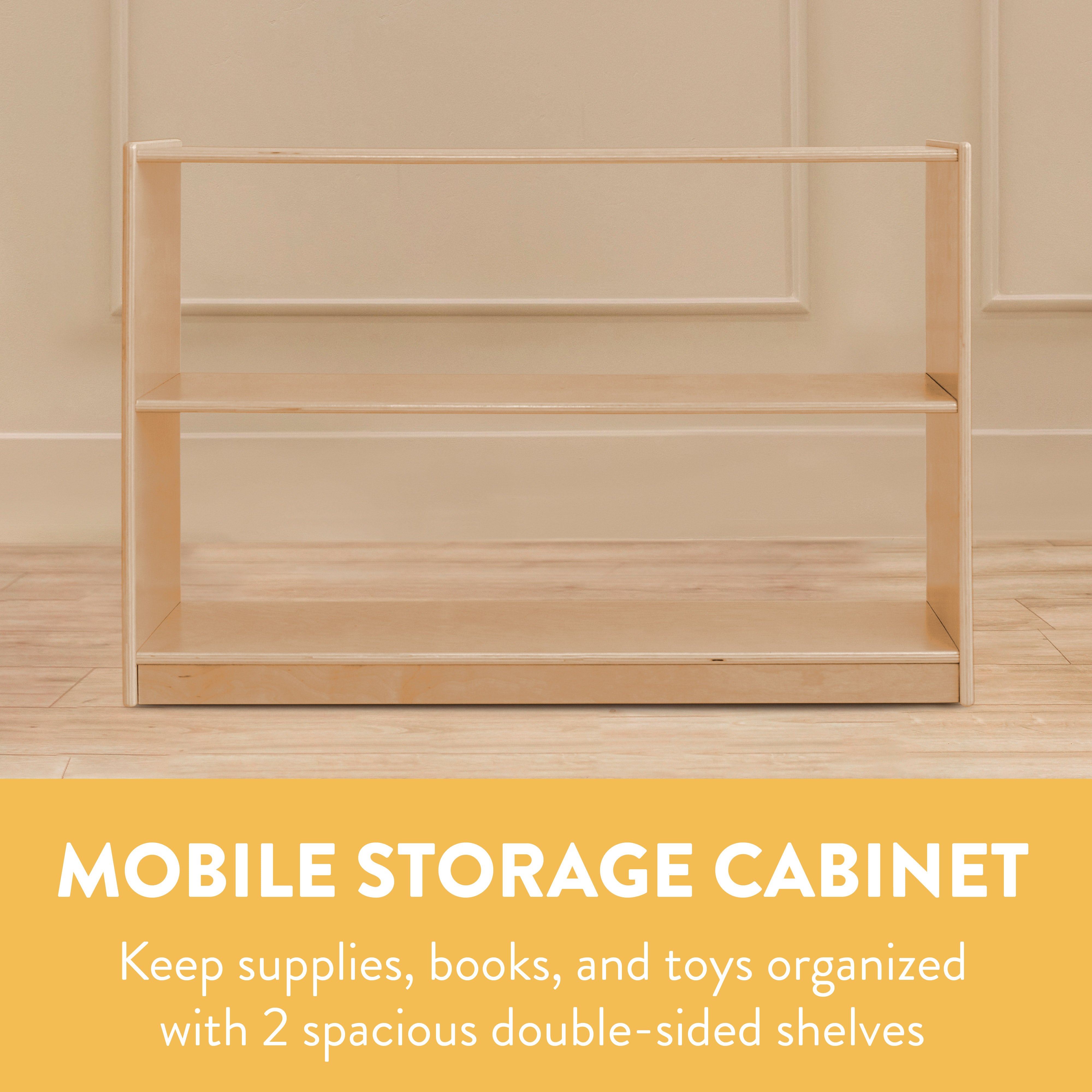 Create a tidy, kid-friendly space at home with Back2School Express 2-Shelf Double-Sided Mobile Storage Cabinet—a practical solution for organizing books, toys, and learning materials. With two spacious shelves, this bookshelf offers ample storage in a compact design, perfect for puzzles, games, storage cubes, and other everyday essentials, encouraging independence and tidy habits in young learners. Open shelving allows children to easily see and access their belongings, making it a practical addition to a playroom, bedroom, or homeschool. Use the small bookshelf on its own or pair it with a storage bin to keep smaller items neatly organized. Designed with double-sided access, this shelf organizer can be placed against a wall or used as a low divider to define play zones and learning spaces. Crafted from sustainably sourced birch plywood, this bookcase features a durable, scratch-resistant finish that protects the wood surface from daily wear. A UV inhibitor helps prevent discoloration for long-lasting quality. Strong and sturdy, the natural birch plywood construction is designed to withstand everyday use in busy homes, classrooms, and daycare environments. Whether selecting a book shelf for kids rooms or creating an activity space, this versatile toy storage organizer allows for a seamless and adaptable setup.