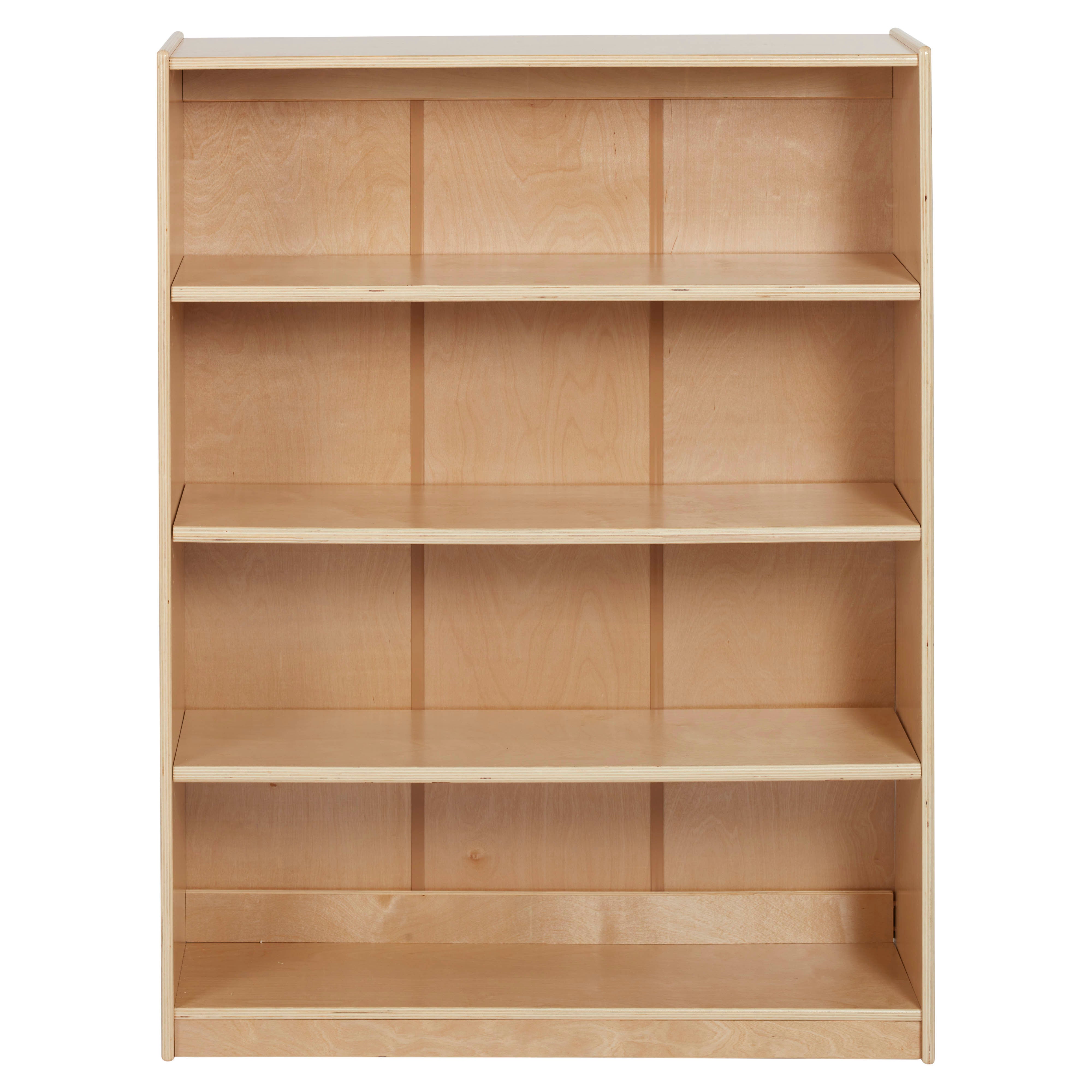 Spark imagination and keep clutter at bay with the Back2School Express 4-Shelf Adjustable Bookshelf—an inviting, adjustable book stand for the organization and storage of books, puzzles, and playroom must-haves. This wooden bookshelf features four spacious shelves with customizable heights to accommodate belongings of various sizes. The furniture supports organization that grows with your child’s needs, making it ideal for use as a library bookcase, Montessori bookshelf, or daycare furniture. Open shelving helps children see their belongings, making it a practical choice for a playroom, bedroom, classroom, or home. Use the bookshelf alone or pair with a storage bin to keep smaller items contained. Designed with a back panel to keep items securely in place, this shelf organizer is ideal for positioning against a wall, helping maximize floor space. Crafted from sustainably sourced birch plywood, the storage shelves feature a durable, scratch-resistant finish that protects the wood surface from daily wear. A UV inhibitor helps prevent discoloration for long-lasting quality. Strong and sturdy, the natural birch plywood construction is designed to withstand everyday use in a busy home and daycare environment. Whether selecting a storage cabinet, toy storage, or bedroom furniture, this storage organizer allows for a seamless setup.