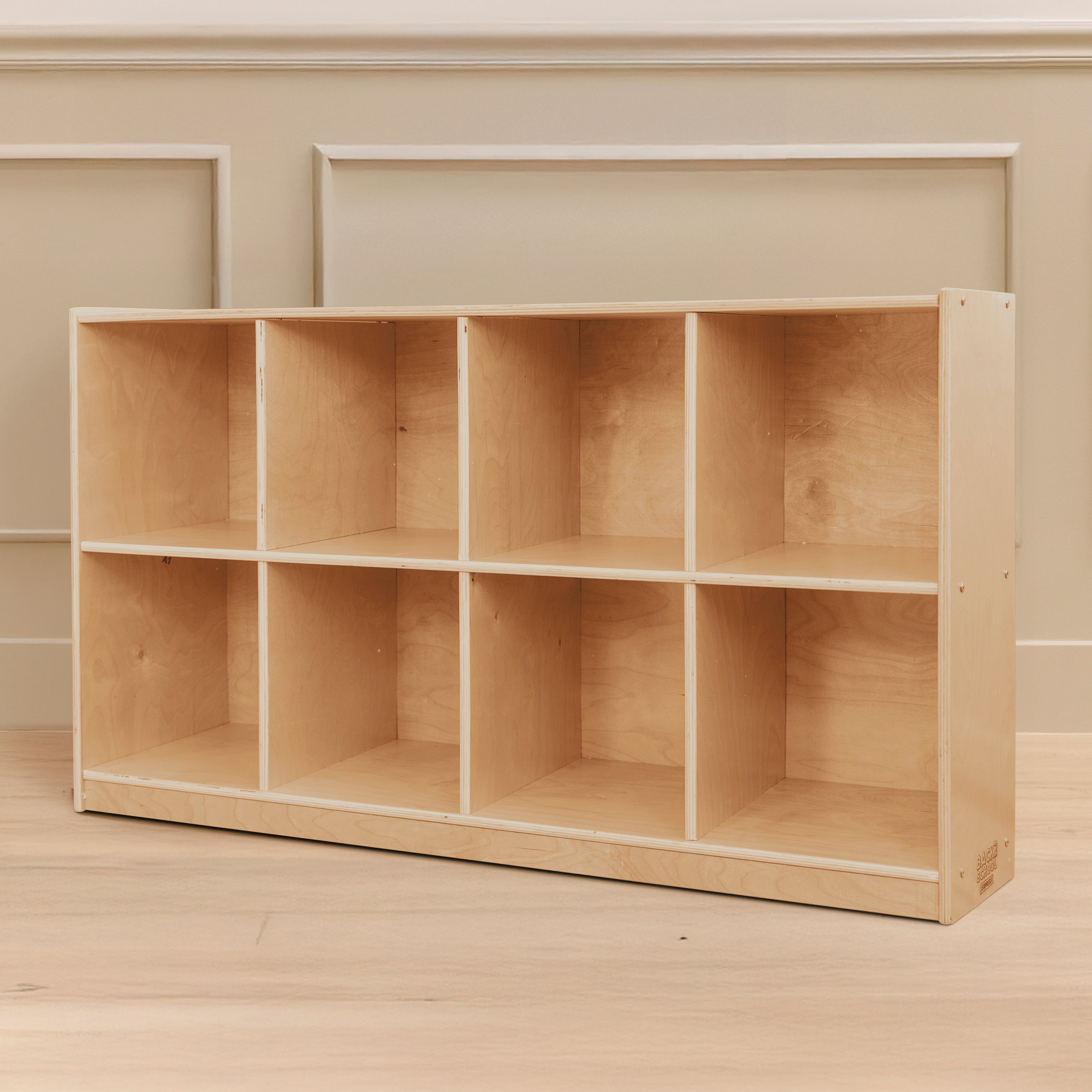 Create an organized learning environment with the Back2School Express 8-Compartment Mobile Storage Cabinet—a practical solution for backpack storage for classroom use and playroom storage at home. The classroom backpack storage includes eight spacious shelves in a compact design, perfect for students to store everyday essentials such as lunchboxes, water bottles, jackets, and shoes, encouraging tidy habits and independence. Open shelving allows children to easily see and access their belongings, making it a practical addition to a school, daycare, or playroom. Use the kids cubbies on their own or pair them with storage bins to keep smaller items neatly organized. Designed with a back panel to keep items securely in place, this backpack cubby is ideal for positioning against a wall, helping maximize floor space. Crafted from sustainably sourced birch plywood, this classroom furniture features a durable, scratch-resistant finish that protects the wood surface from daily wear. A UV inhibitor helps prevent discoloration for long-lasting quality. Strong and sturdy, the natural birch plywood construction is designed to withstand everyday use in a busy home or preschool. The toy organizer features four smooth-rolling casters, making it easy to move between spaces—perfect for home décor, toy storage, or classroom organization.