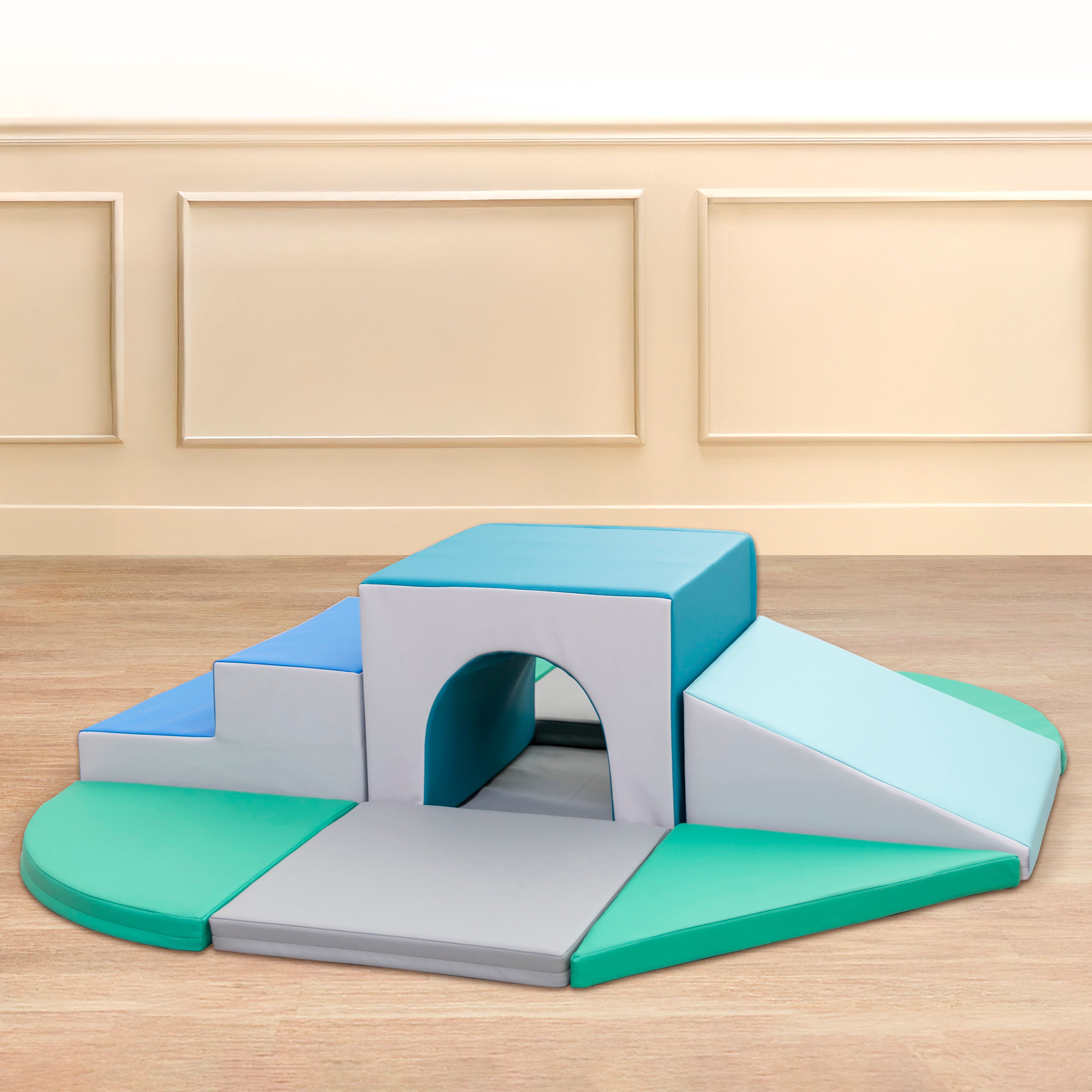 Spark movement and exploration at home or in the classroom with the Back2School Express All-Around Step 'n' Slide Tunnel, a 9-piece climber that supports active play and early development. Toddler climbing toys help little ones build strength, coordination, and confidence through climbing, crawling, and sliding while having fun. Use it as a toddler climbing zone, baby slide station, or part of a modular toddler playset. Lightweight and easy to move, the foam climbing blocks can be rearranged to keep playtime fresh and flexible. The textured non-slip base keeps the climbing blocks securely in place during active use. Made with kid-safe, high-quality materials that are easy to clean, the climber meets safety standards for use at home and in early learning environments. The toddler slide set is durable, low-maintenance, and designed to withstand everyday play. Parents and caregivers love this toddler indoor slide because it fits into everyday spaces—no dedicated playroom required. Ideal for spacious rooms and dedicated play areas, this set offers expansive movement opportunities that keep kids engaged. Whether it’s a rainy day or time for screen-free fun, this soft climber transforms any room into a safe and exciting space to grow and play.