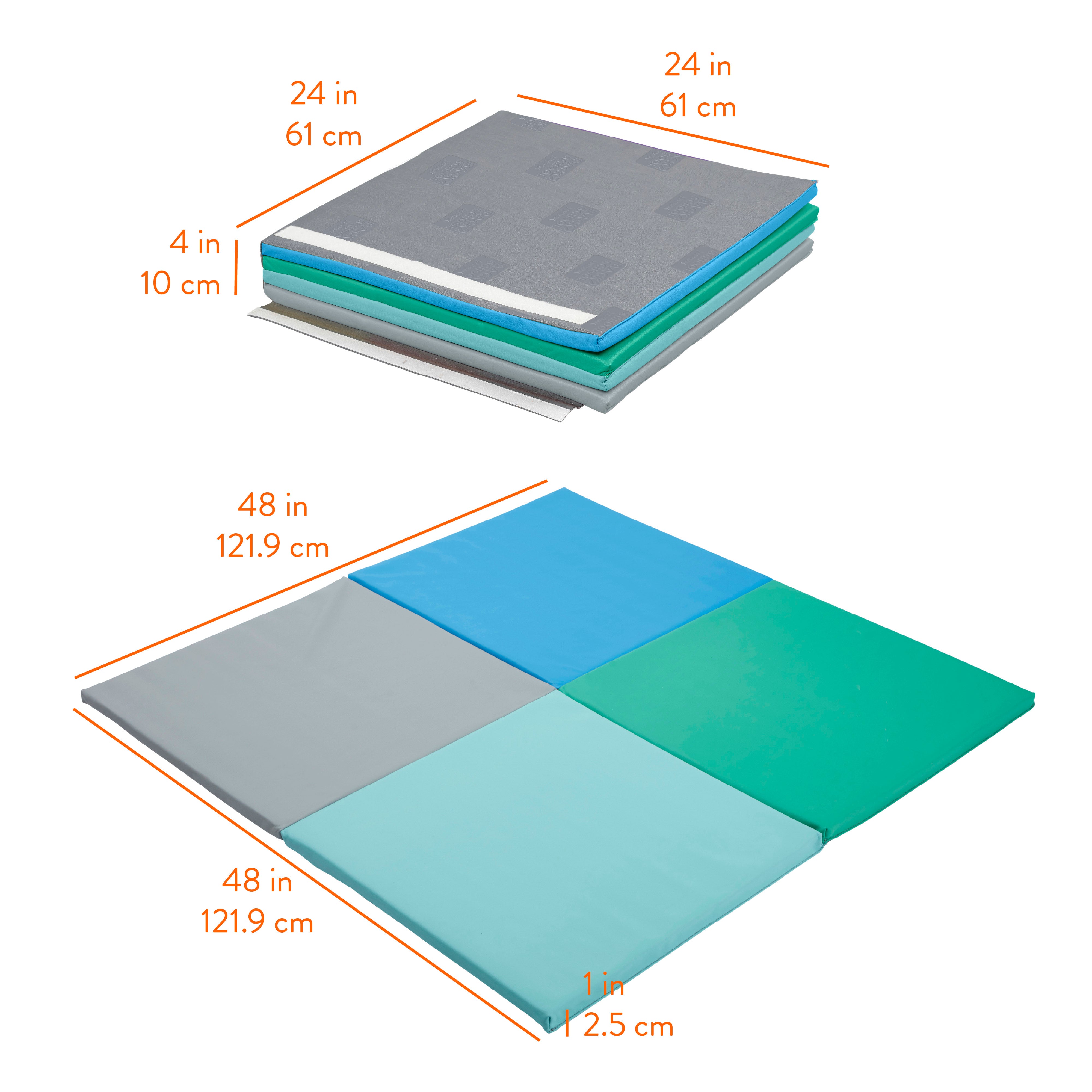 Transform any space into a soft and supportive environment tailored for learning, play, and early development with this baby play mat. The Back2School Express FourSquare Folding Activity Mat provides a cushioned surface for babies to enjoy tummy time, crawl, and engage in active play, making it a perfect addition to your home playroom or daycare center. Crafted for comfort, this colorful soft activity mat supports the development of fine motor skills, color recognition, and problem-solving through hands-on exploration. The thick foam mat features a textured non-slip base to help keep it in place during active use, while the foldable design allows for easy storage in a closet or large bin. Made with kid-safe, high-quality materials that are easy to clean, the floor mat meets safety standards for use at home and in early learning environments. This baby mat for the floor is durable, low-maintenance, and designed to withstand everyday play. Whether you're creating a cozy corner for playtime on the floor or setting up a safe space for imaginative adventures, this tummy time mat brings comfort and peace of mind to your daily routine. It's one less thing to worry about—unfold, play, and enjoy more meaningful moments together.