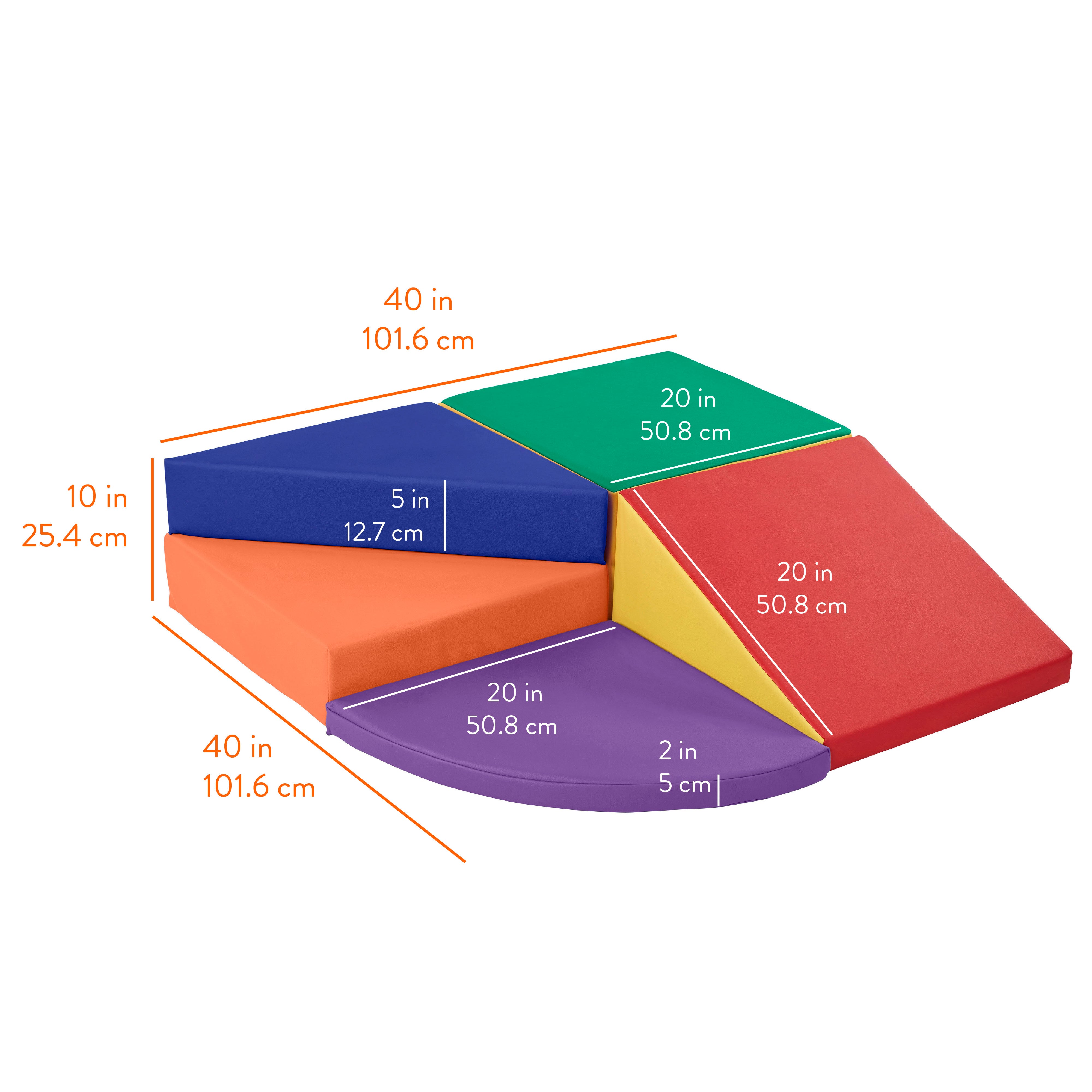 Spark movement and exploration at home or in the classroom with the Back2School Express Little Haven Twist Step & Slide Corner Climber, a 5-piece climber that supports active play and early development. Toddler climbing toys help little ones build strength, coordination, and confidence through climbing, crawling, and sliding while having fun. Use it as a toddler climbing zone, baby slide station, or part of a modular toddler playset. Lightweight and easy to move, the foam climbing blocks can be rearranged to keep playtime fresh and flexible. The textured non-slip base keeps the climbing blocks securely in place during active use. Made with kid-safe, high-quality materials that are easy to clean, the climber meets safety standards for use at home and in early learning environments. The toddler slide set is durable, low-maintenance, and designed to withstand everyday play. Parents and caregivers love this toddler indoor slide because it fits into everyday spaces—no dedicated playroom required. Its compact footprint makes it perfect for a bedroom, living room, or homeschool corner, delivering big movement opportunities in small places. Whether it’s a rainy day or time for screen-free fun, this soft climber transforms any room into a safe and exciting space to grow and play.