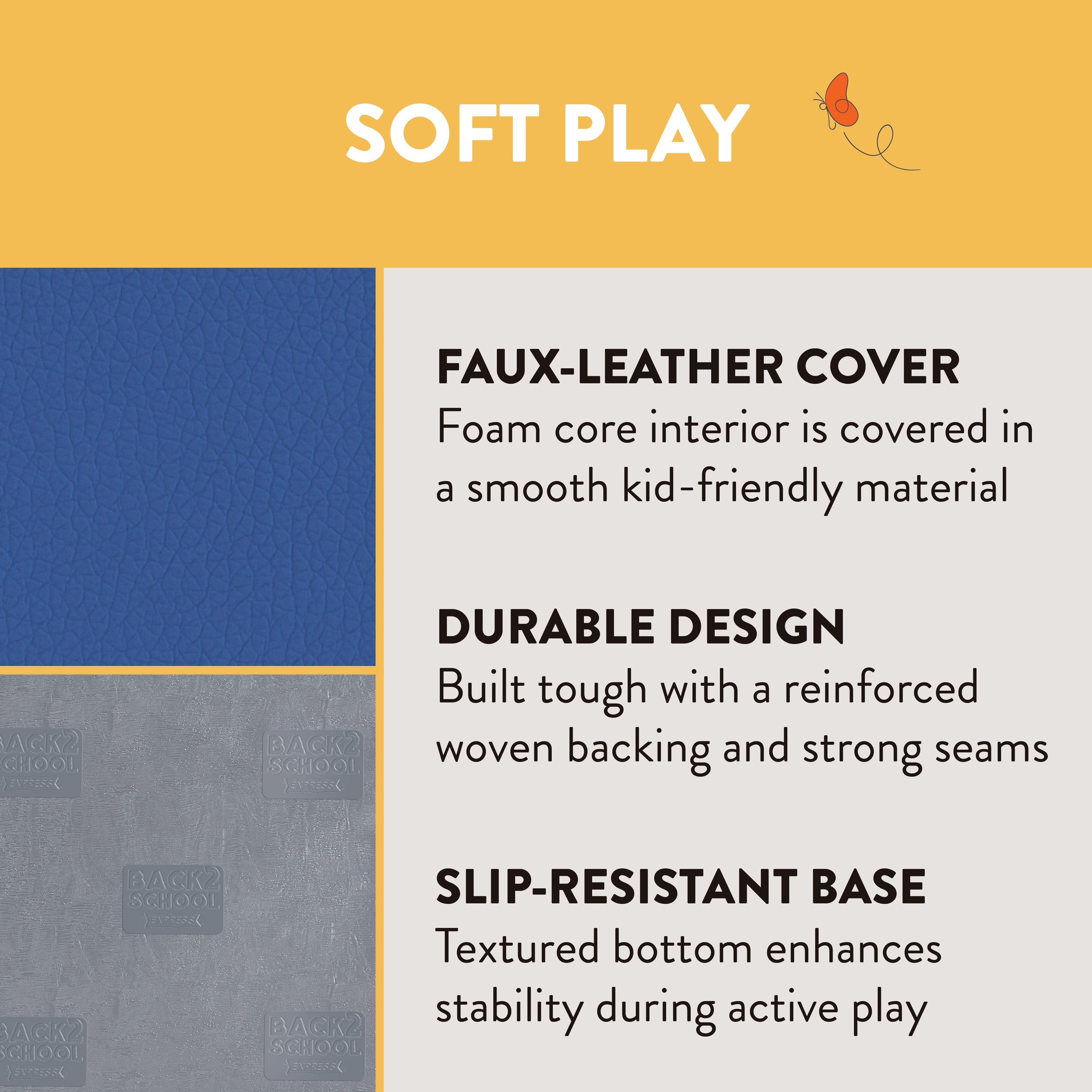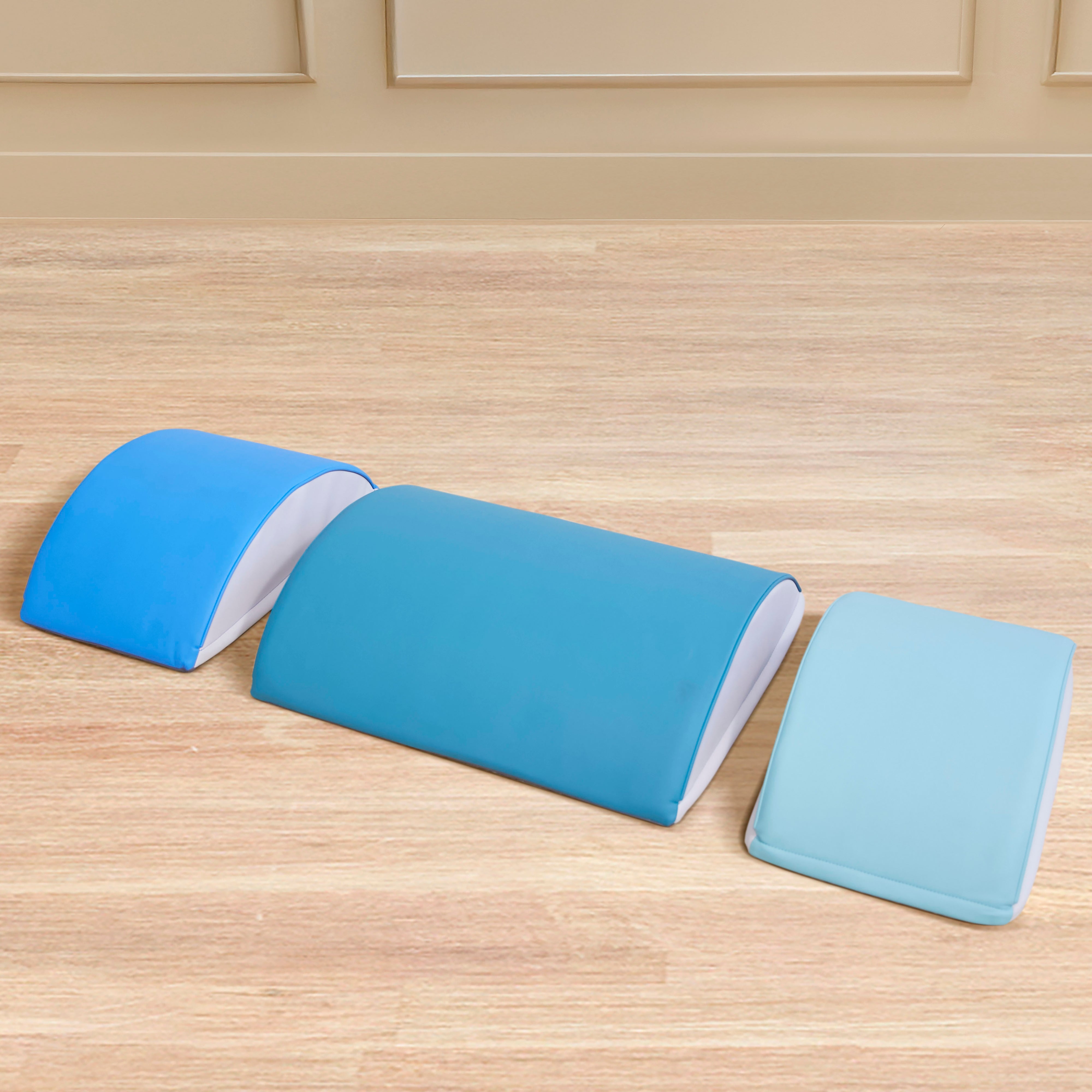 Get little bodies moving and minds growing with the Back2School Express Rolling Ridge Balance Set—a 3-piece softplay set that turns everyday spaces into exciting zones for balance, coordination, and active play. Toddler climbing toys help little ones build strength, body control, and confidence as they rock, balance, climb, and crawl. Flip the balance logs into balance boards or combine with foam climbing blocks to create an activity play set or obstacle course for kids. The textured, non-slip base keeps these toddler room essentials securely in place during active use. Made with kid-safe, high-quality materials that are easy to clean, the indoor playset meets safety standards for use at home and in early learning environments. The kids climbing toys are durable, low-maintenance, and built to withstand everyday play. Parents and caregivers love this baby climbing toy because it fits into everyday spaces—no dedicated playroom required. Perfect for rainy days, screen-free afternoons, or active group play, these toddler foam climbing blocks transform any room into a safe, engaging play space. Whether used as baby climbing blocks in a classroom or balance logs for kids, the three-piece activity set blends fun, style, and functionality—making it a must-have play room essential.