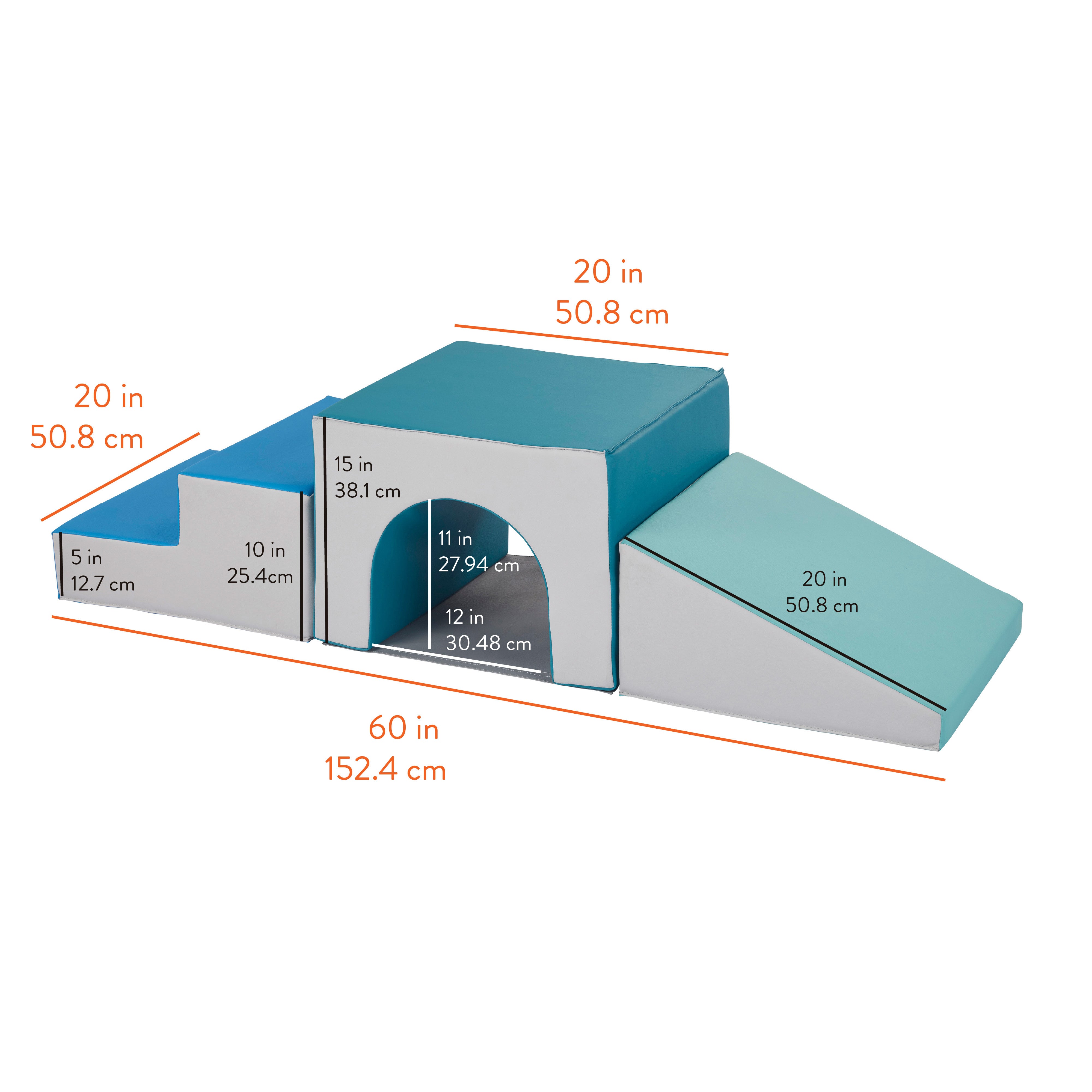 • Dimensions: The soft play set is the perfect size for little ones measuring 60" L x 20" W x 15" H, Adult Active Engaged & Direct Supervision Required; light assembly is required