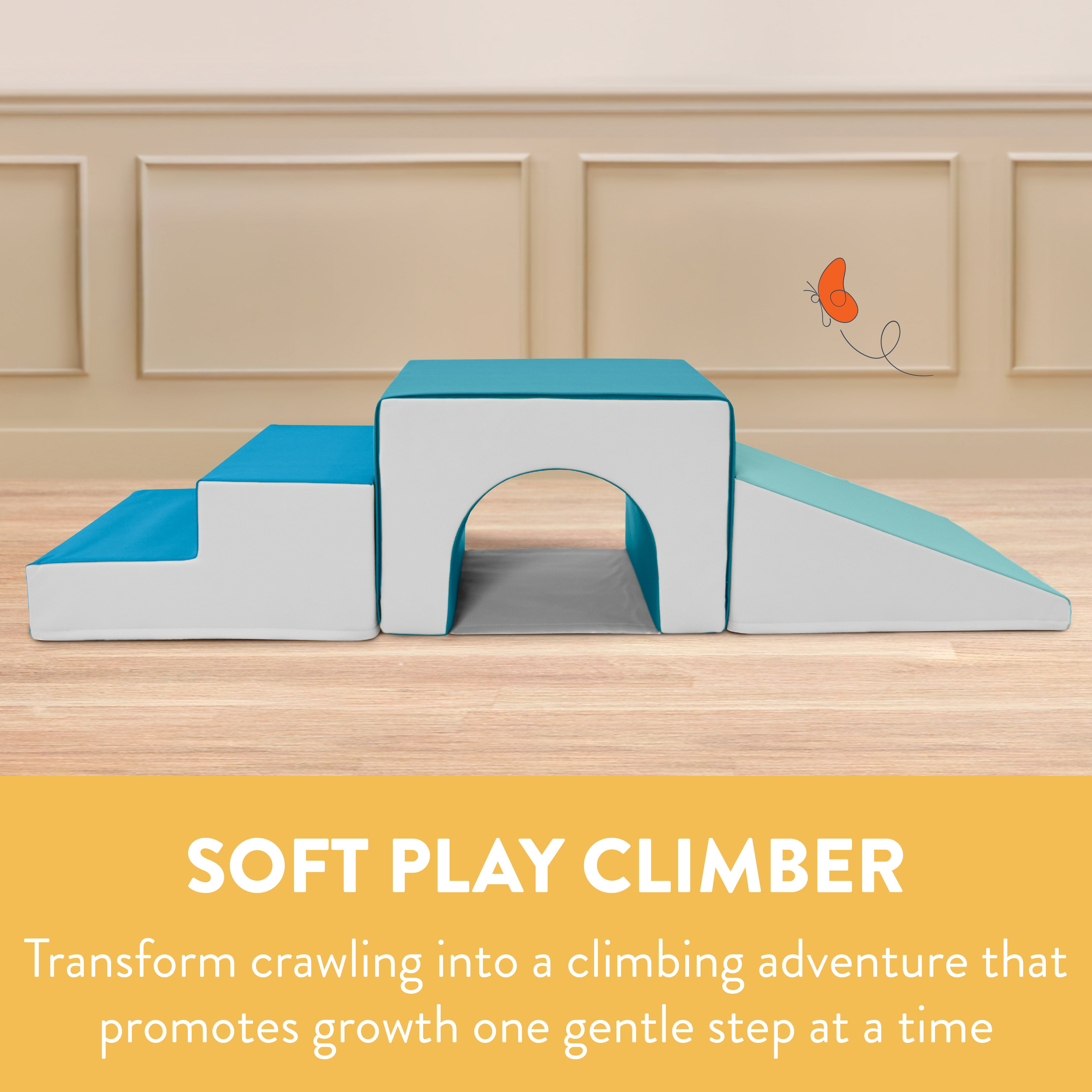 Spark movement and exploration at home or in the classroom with the Back2School Express Step N' Slide Tunnel, a 3-piece climber that supports active play and early development. Toddler climbing toys help little ones build strength, coordination, and confidence through climbing, crawling, and sliding while having fun. Use it as a toddler climbing zone, baby slide station, or part of a modular toddler playset. Lightweight and easy to move, the foam climbing blocks can be rearranged to keep playtime fresh and flexible. The textured non-slip base keeps the climbing blocks securely in place during active use. Made with kid-safe, high-quality materials that are easy to clean, the climber meets safety standards for use at home and in early learning environments. The toddler slide set is durable, low-maintenance, and designed to withstand everyday play. Parents and caregivers love this toddler indoor slide because it fits into everyday spaces—no dedicated playroom required. Its compact footprint makes it perfect for a bedroom, living room, or homeschool corner, delivering big movement opportunities in small places. Whether it’s a rainy day or time for screen-free fun, this soft climber transforms any room into a safe and exciting space to grow and play.