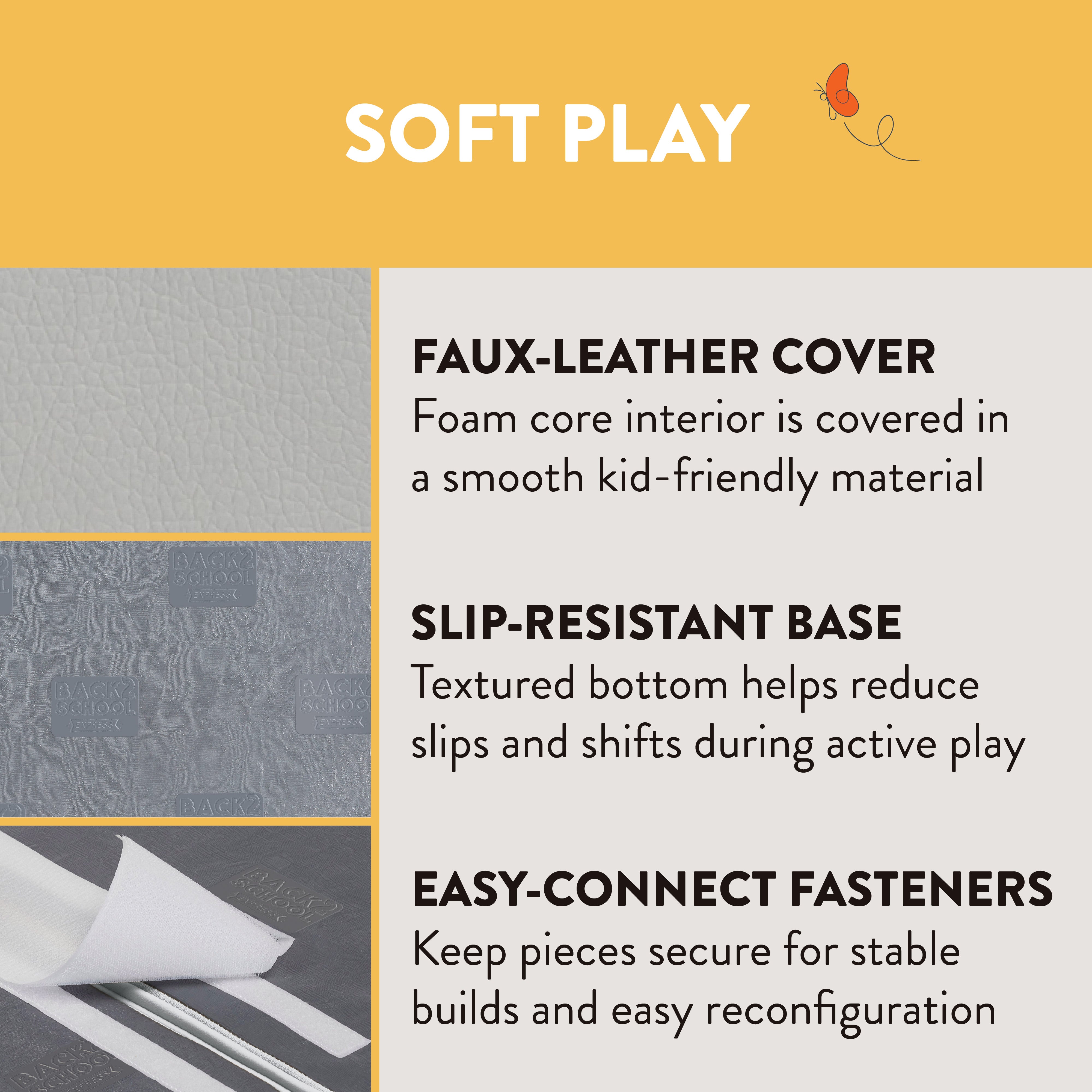 • Smart Design: Set with easy-connect fasteners is made with a high-density foam core covered in a latex-free faux-leather, built tough with a reinforced woven backing and strong seams for daily play