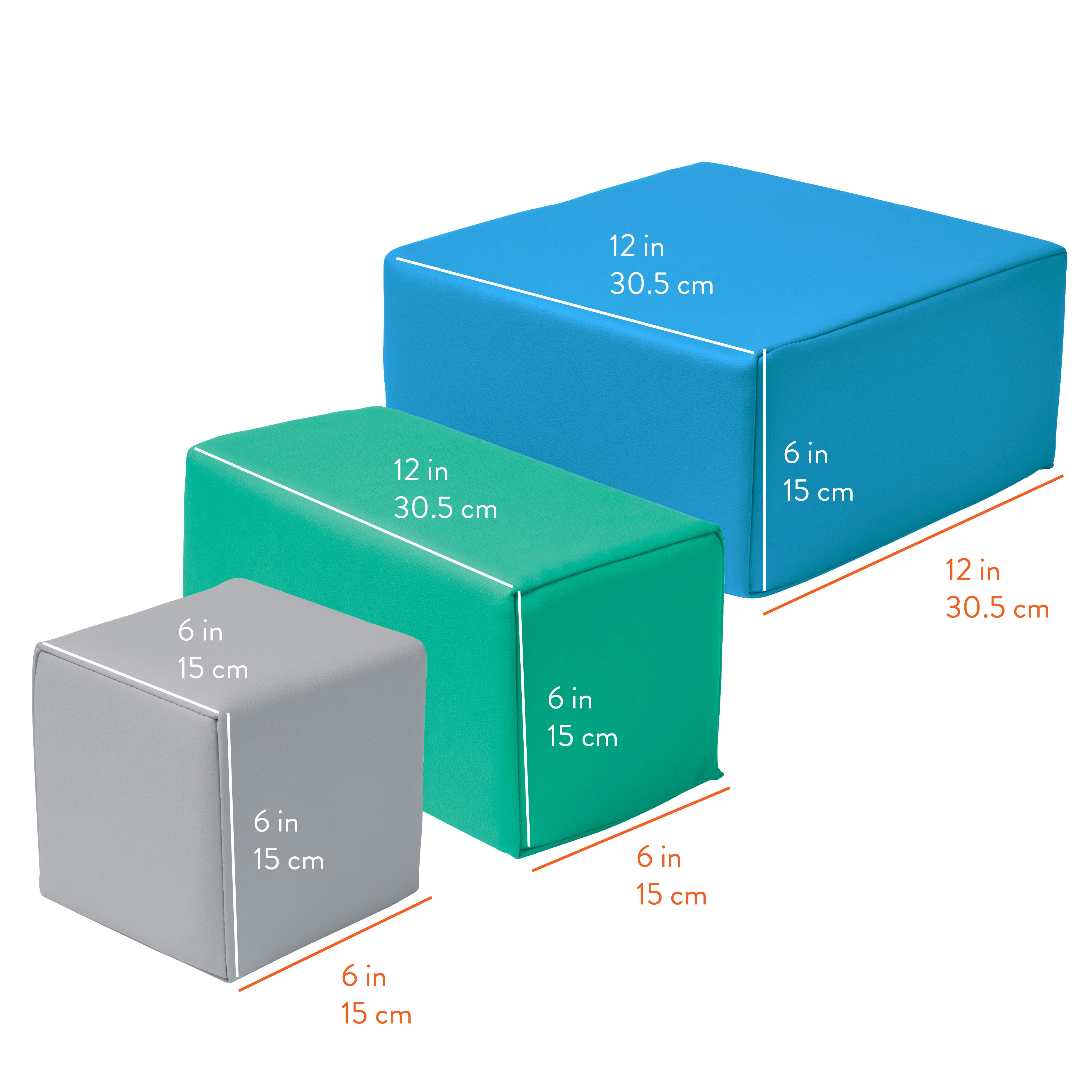 • Built to Last: Blocks for toddlers are crafted from high-density foam core covered in a latex-free faux-leather built tough with a reinforced woven backing and strong seams for daily play
