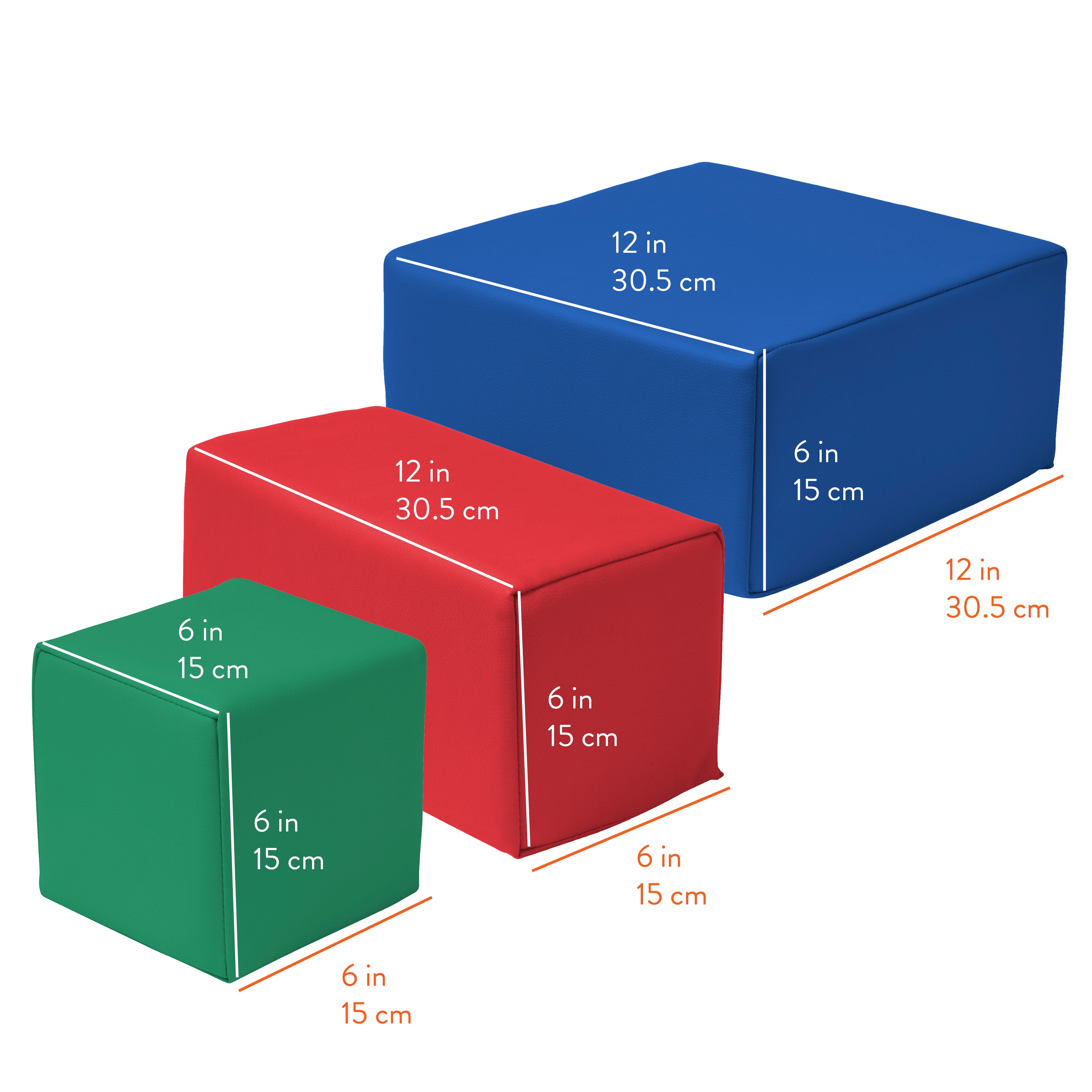 • Dimensions: The baby blocks are just the right size for little ones measuring from 6" L x 6" W x 6" H to 12" L x 12" W x 6" H, Adult Active Engaged & Direct Supervision Required