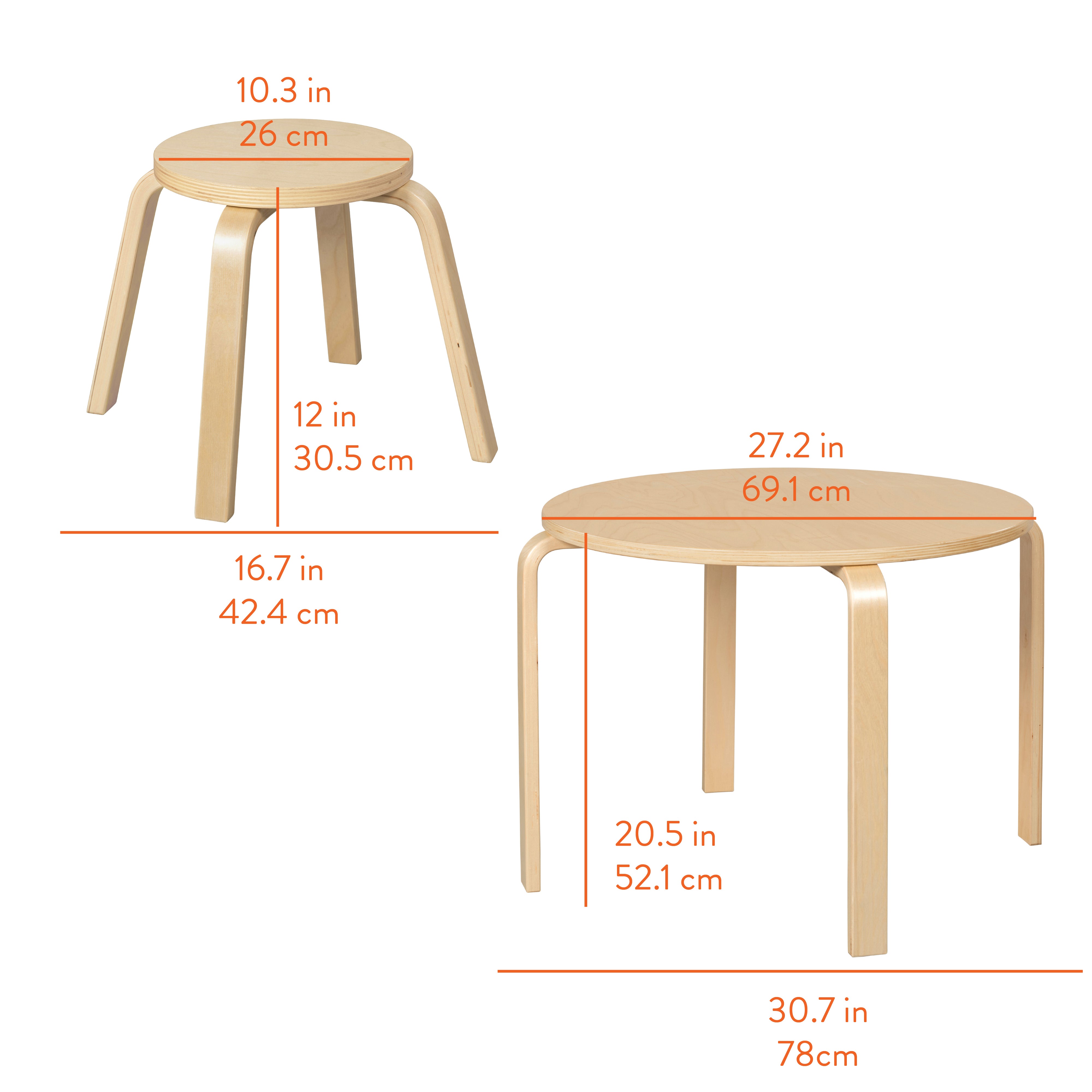 • Kids Table and Chairs: Wood furniture set includes one round table and four bentwood stools, just the right size for little ones to play, learn, draw, and explore creativity together or on their own
