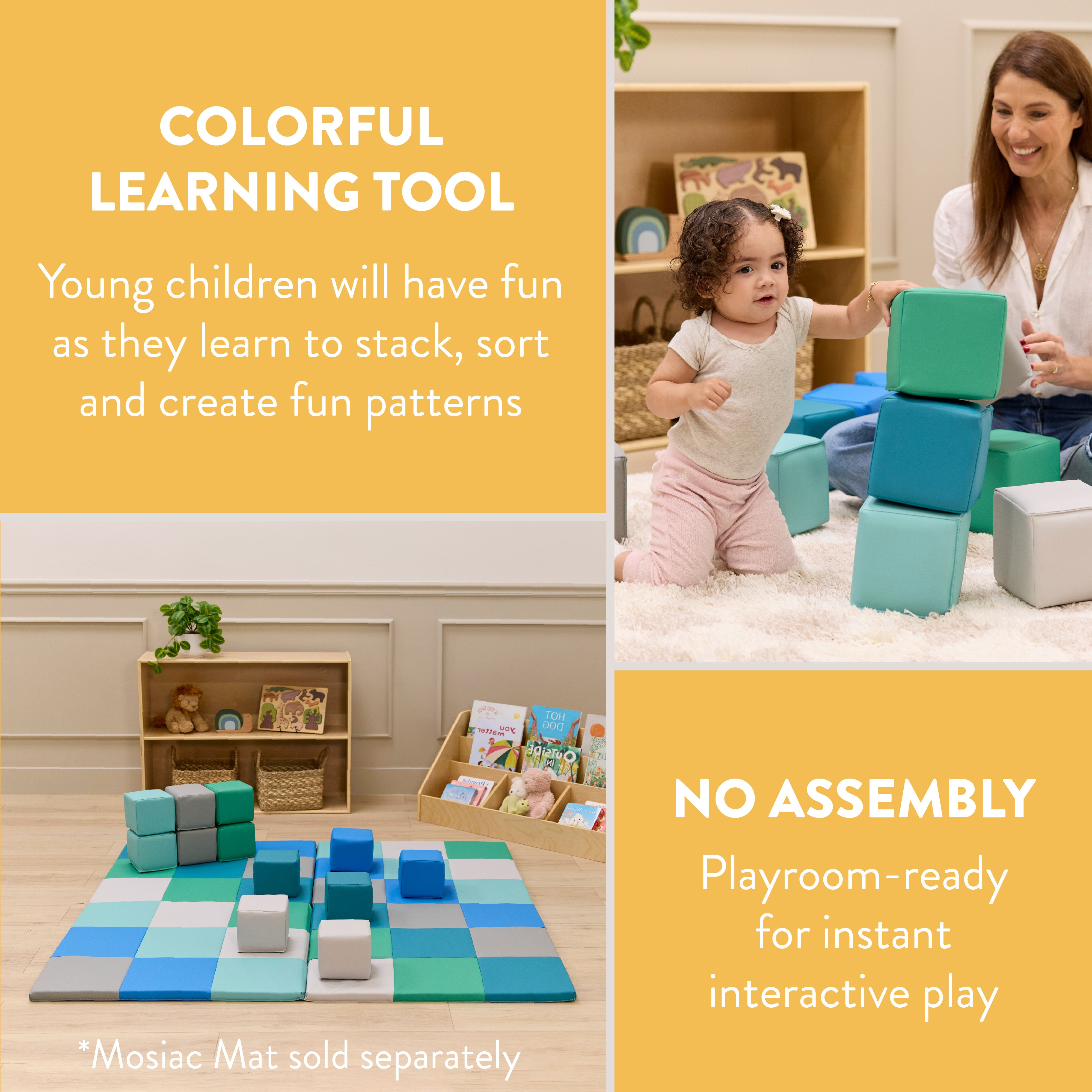 Transform any space into a soft, supportive environment designed for learning, play, and early development with the Back2School Express Mosaic Toddler Building Cubes. This 12-piece set is sized just right for babies and toddlers, inviting little hands to stack, build, and explore a world of creative possibilities. Whether kids are constructing towers, making patterns, or inventing new shapes, these soft foam blocks encourage abstract thinking, problem-solving, and cooperative play. Perfect for home playrooms, preschools, or daycare centers, the lightweight blocks are quiet during play—minimizing noise while maximizing fun. Bright, engaging colors promote color recognition, while hands-on interaction supports gross motor development and spatial awareness. Made with kid-safe, high-quality materials that are easy to clean, the cubes meet safety standards for use at home and in early learning environments. This toddler toy is durable, low-maintenance, and built to withstand everyday play. Whether you're creating a cozy corner for active movement or inspiring open-ended adventures, these soft play blocks offer a safe, cushioned way for little ones to explore, imagine, and grow. Easy to bring out and even easier to love—set them up, let imaginations soar, and enjoy more meaningful moments together.