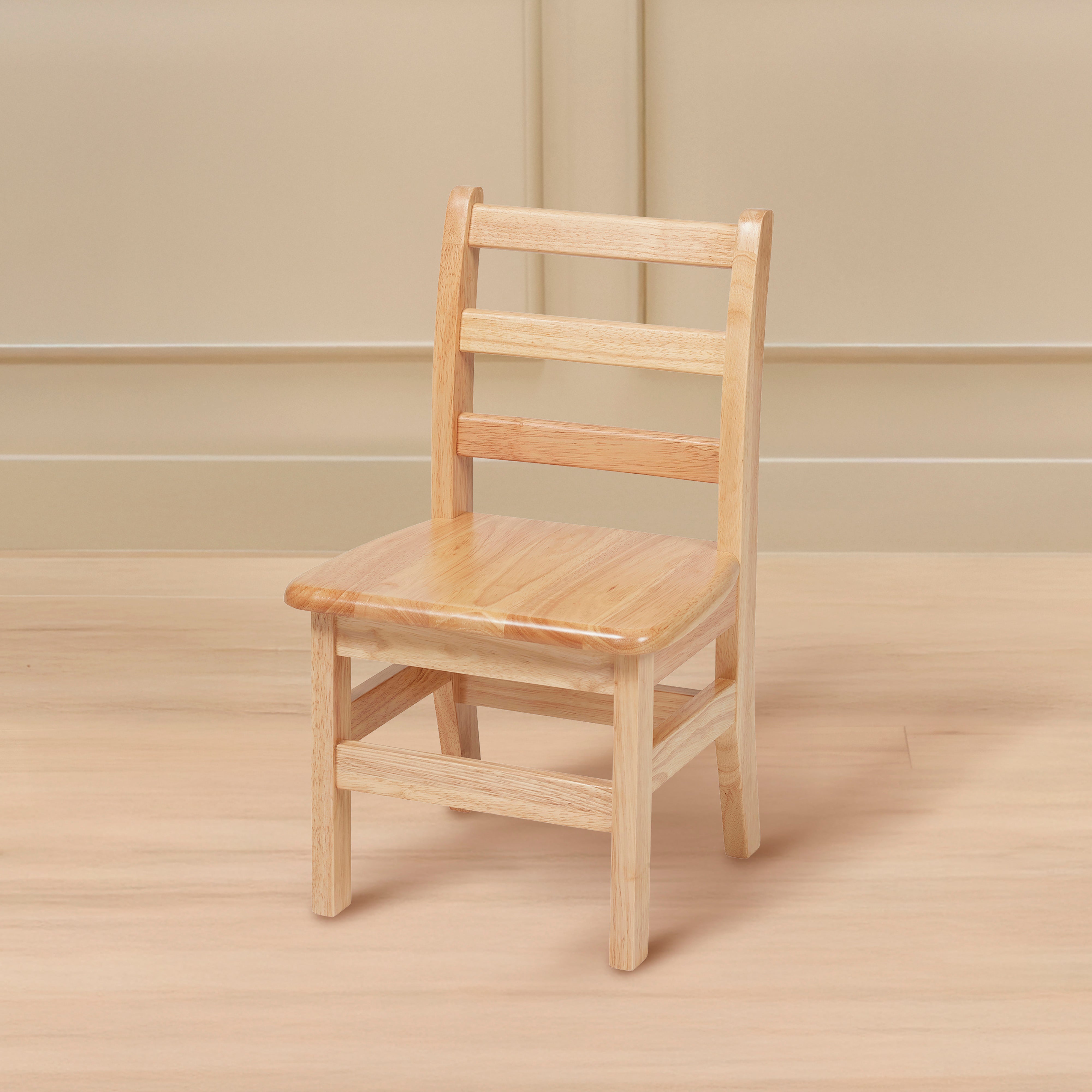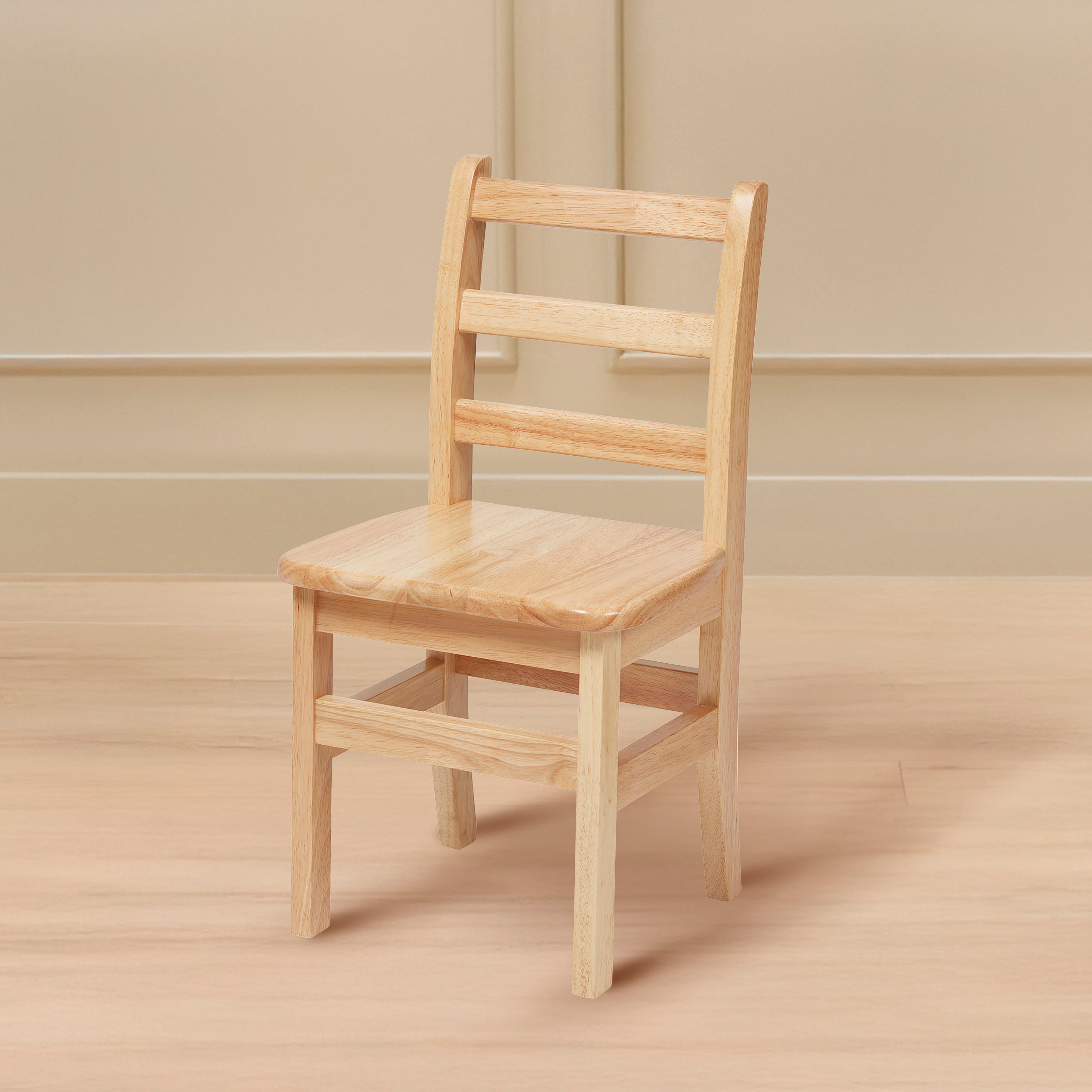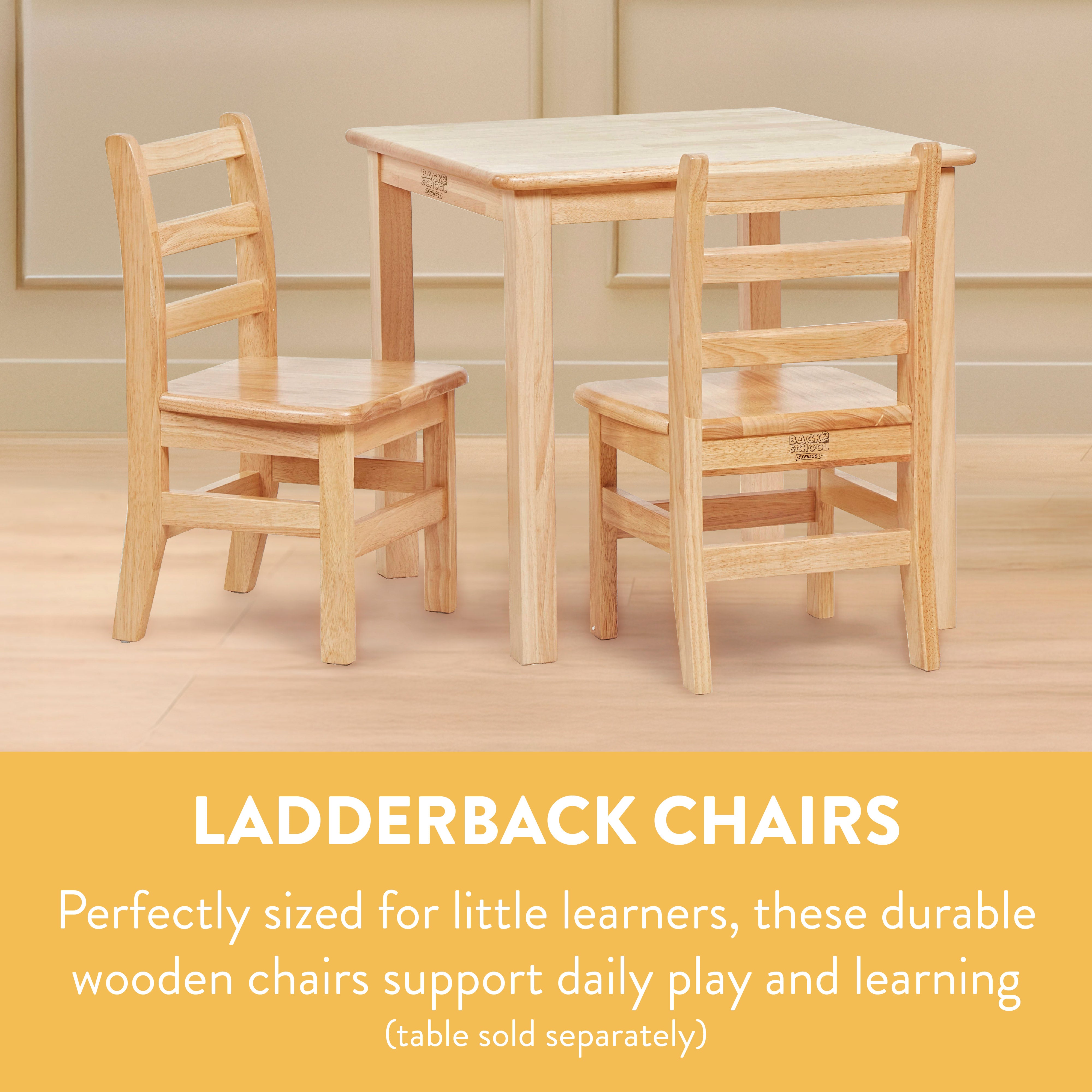 Create a purposeful learning space with the Back2School Express Wooden Ladderback Chairs—a classic wooden chair designed to support play, creativity, and everyday activities. The kids chair features child-friendly proportions with a supportive backrest and angled back legs to help reduce the risk of tipping. The three-rung design provides stable, ergonomic support for young children, helping them sit comfortably during meals, crafts, or story time, giving parents and grandparents confidence in a seat that promotes good posture and everyday use. Perfect for a kids’ play area, homework station, or classroom furniture, the wood chair supports independence and focus by giving children a dedicated space to work and explore. The minimalist design blends seamlessly into home learning setups and preschools. Crafted from rubberwood, the daycare furniture features a durable, scratch-resistant finish that protects the wood surface from daily wear. A UV inhibitor helps prevent discoloration for long-lasting quality. Floor glides help protect surfaces from scratches and scuffs. Strong and sturdy, the natural wood construction is designed to withstand everyday use in a busy home or daycare environment. Whether used as part of a kids desk and chair set or with an activity table, it’s a reliable solution that supports daily routines.